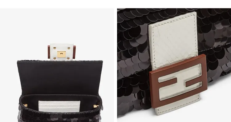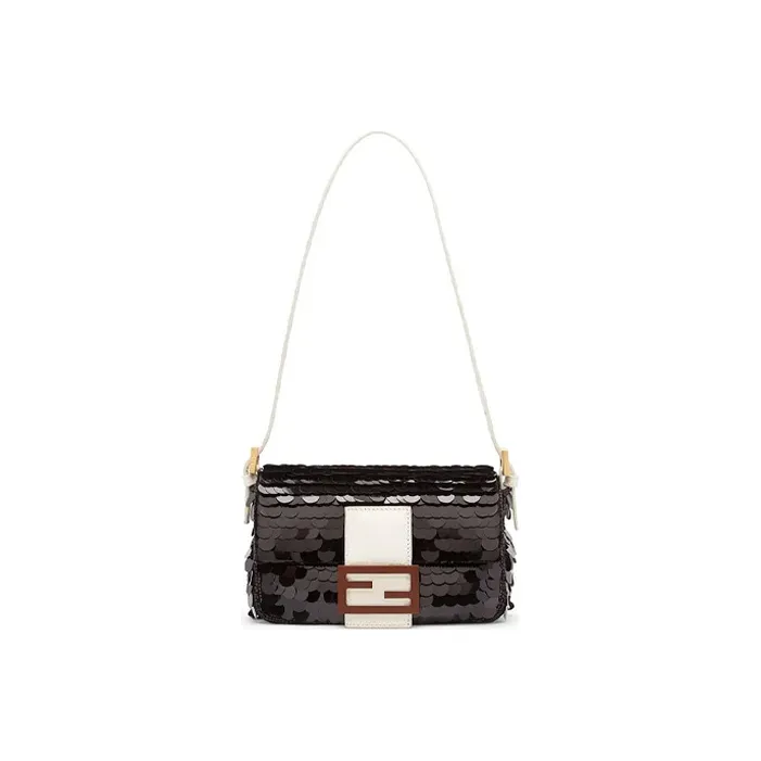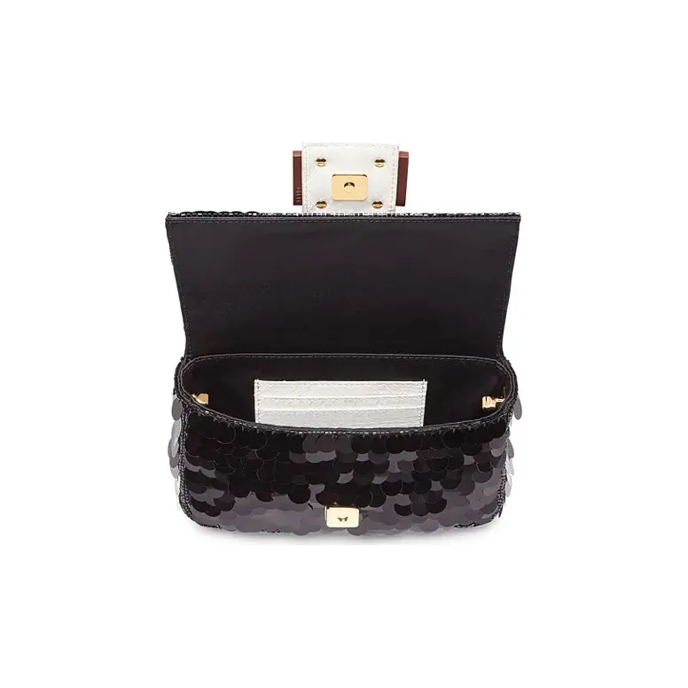 FENDI Baguette Satin Bling Shoulder Bag Mini Women's Black FENDI Baguette Сатин Блестки Сумка через плечо Мини Женская Черная