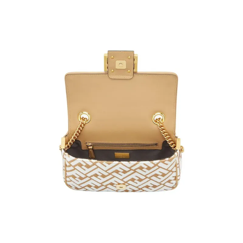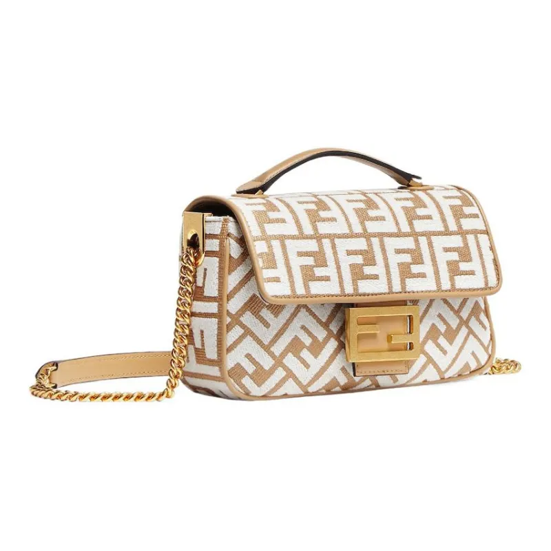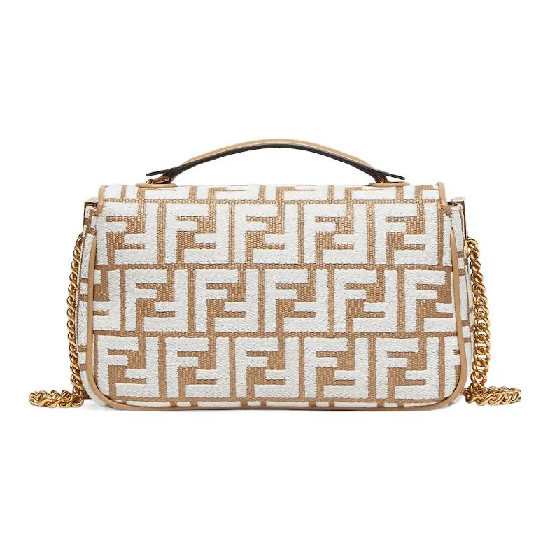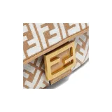 FENDI Baguette Ткани вязаные Рафия Портативный Сумки через плечо Сумка через плечо Средний Женские Коричневый белый