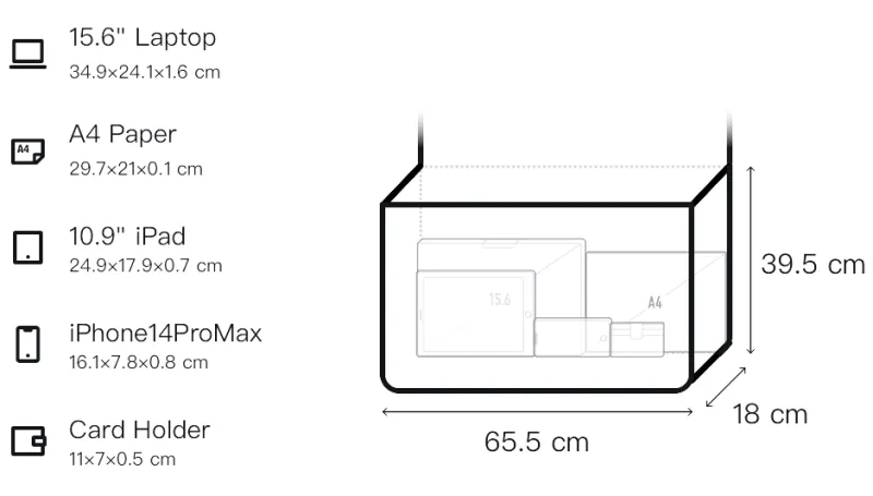 Длина (размер в длину) 65,5 см * Ширина корпуса 18 см * Длина корпуса 39,5 см