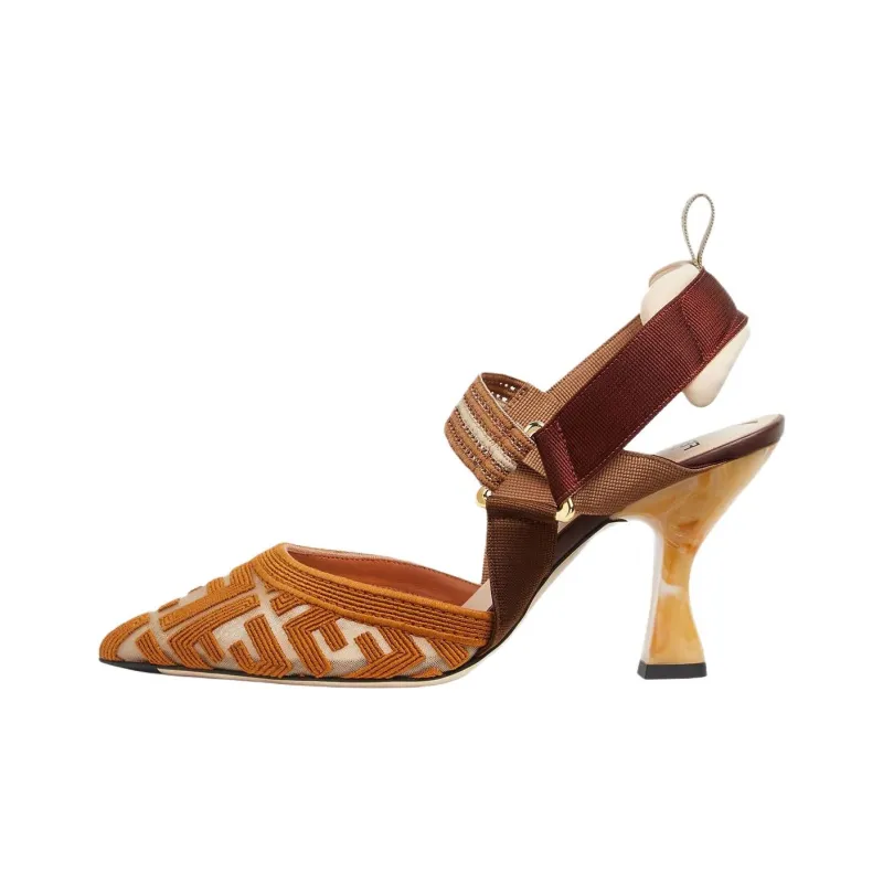 FENDI Colibri Грубый каблук Высокие каблуки 8,5 см Женские Коричневый
