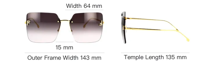 FENDI Пластиковая оправа Квадратные Солнцезащитные очки Женские Золотые