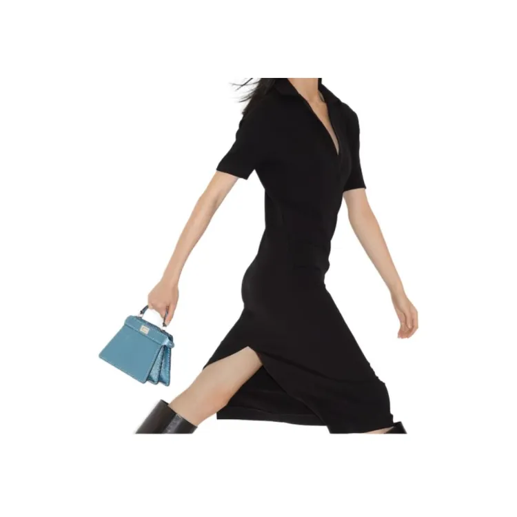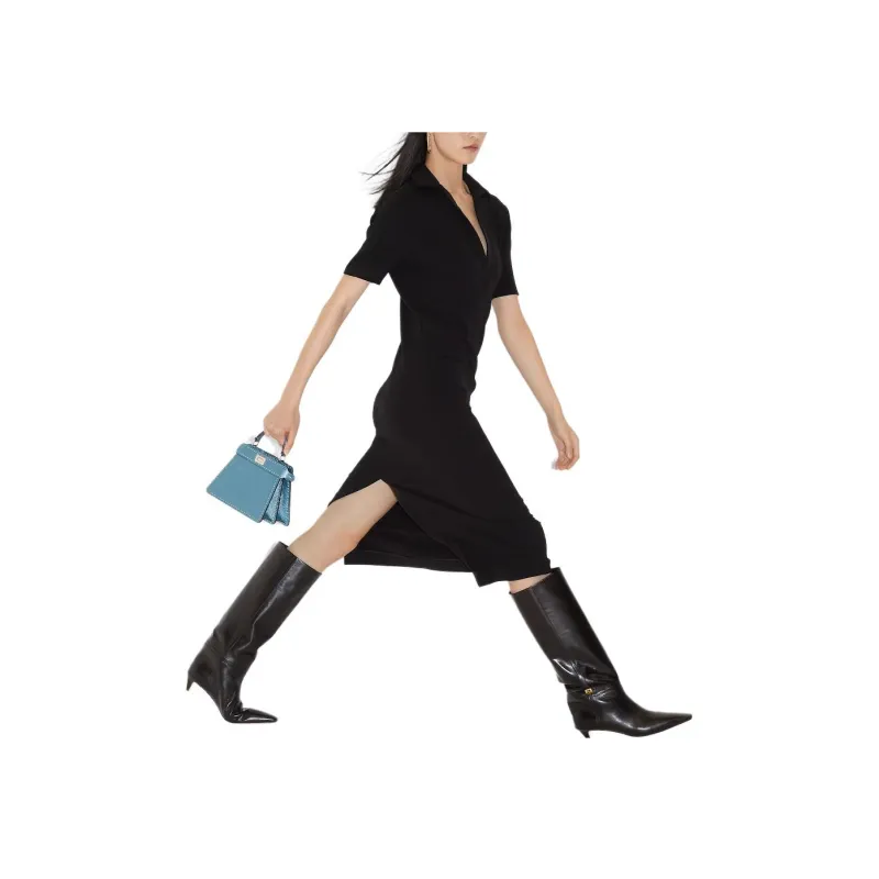 FENDI FW24 Короткое платье с короткими рукавами женское черное