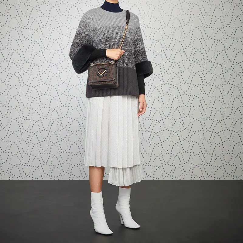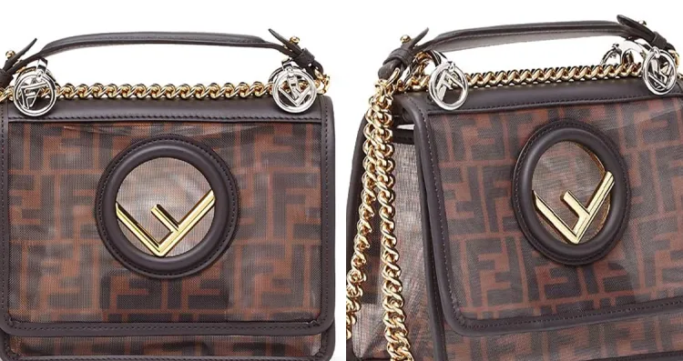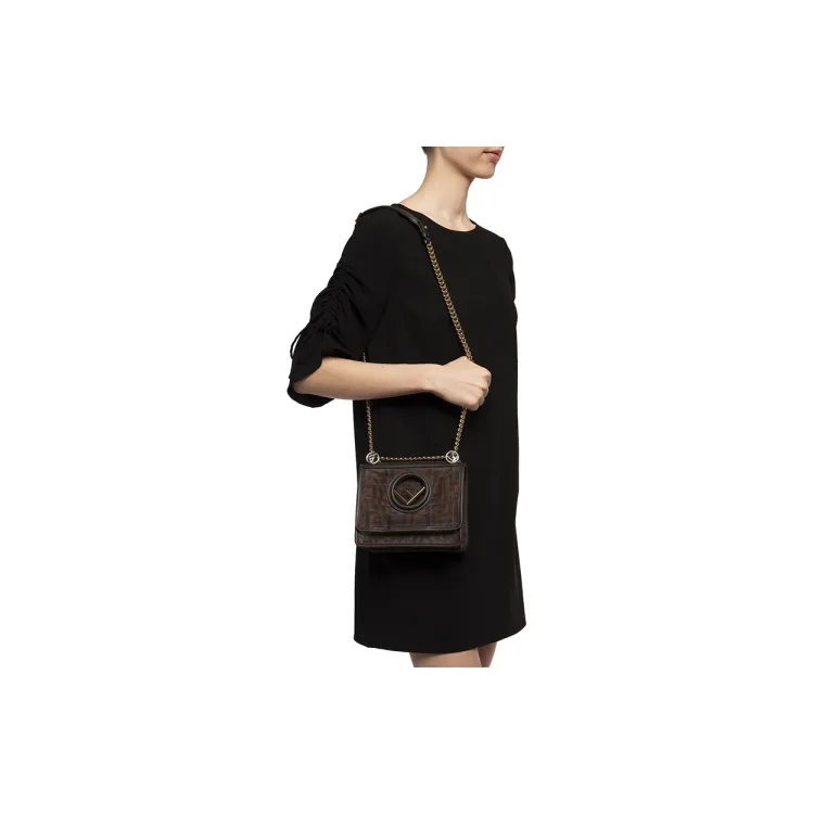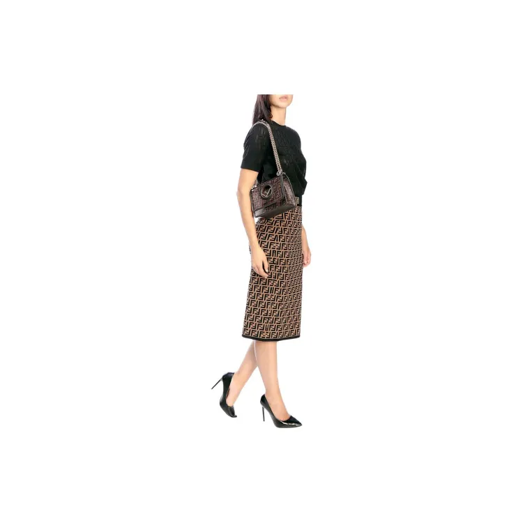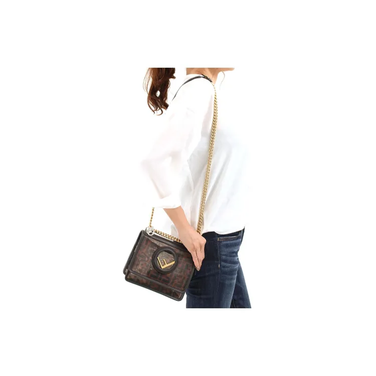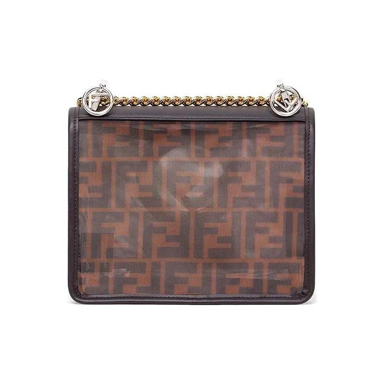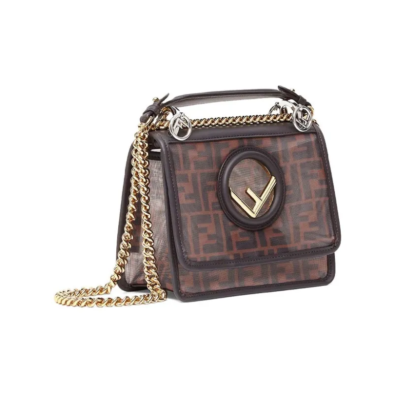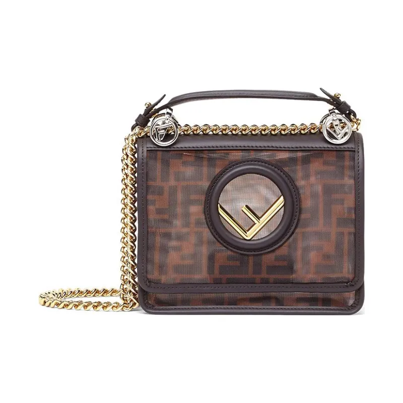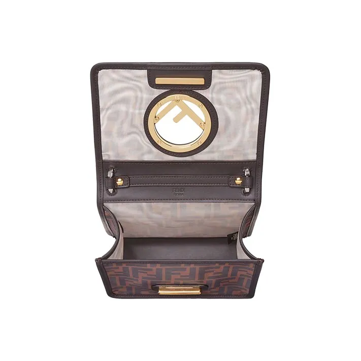 FENDI Kan I Технология Сетка с кожаными вставками Одно плечо Ручная сумка Сумка через плечо Мини Женская Коричневый