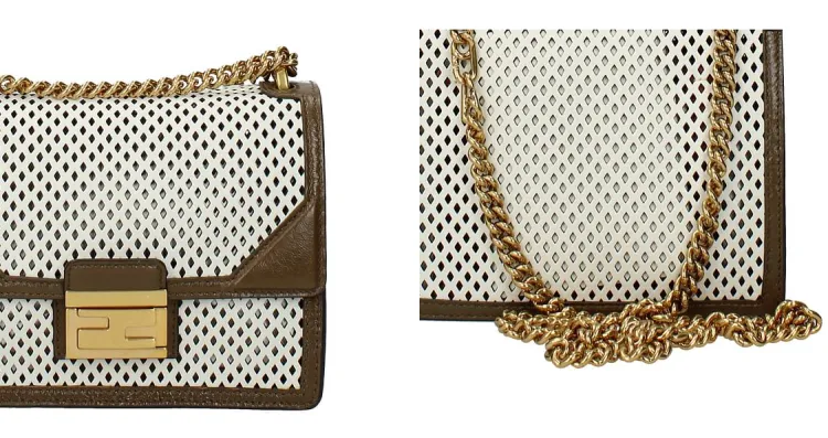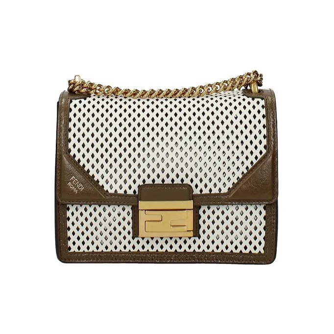 FENDI Kan U Кожа Сумка через плечо Маленькая Женская Белая Коричневая