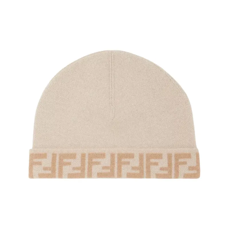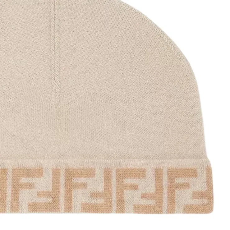 FENDI Детская ШапкаДвусторонняя Детская Шапка Из Шерсти Бежевого Цвета
