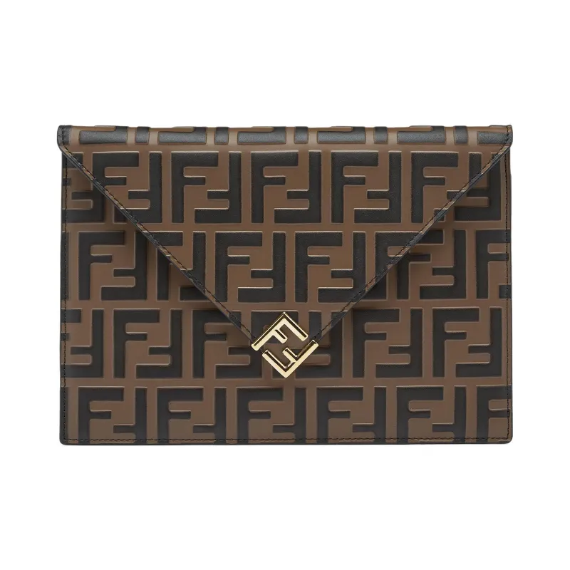 FENDI Кожа Клатч Большой Женский Коричневый