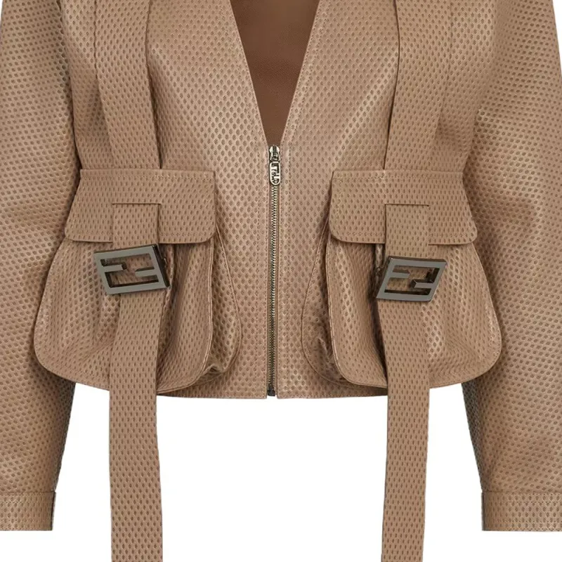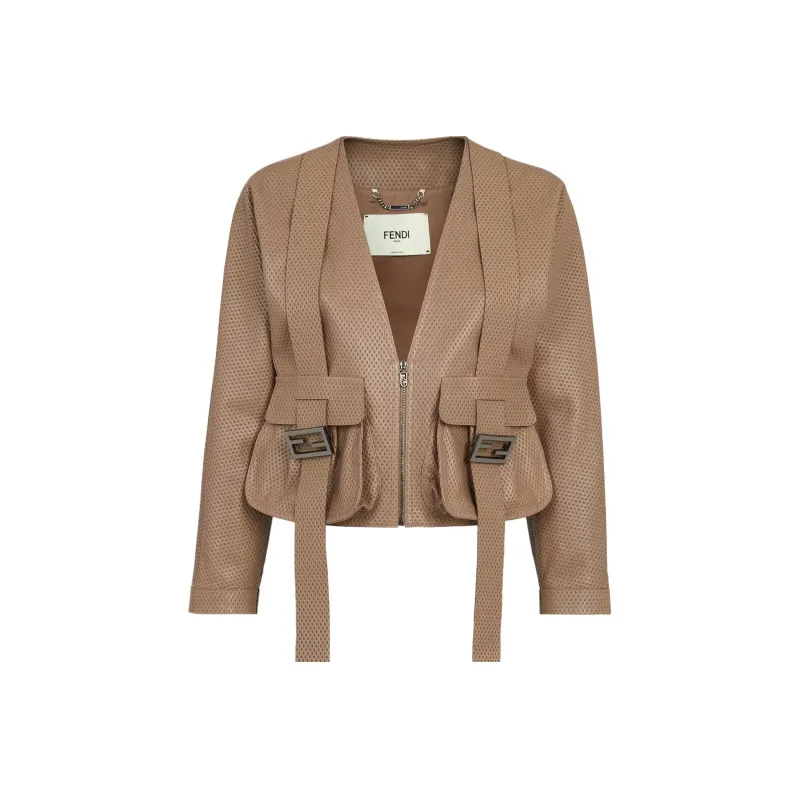 FENDI Кожа Куртка Женская Коричневая