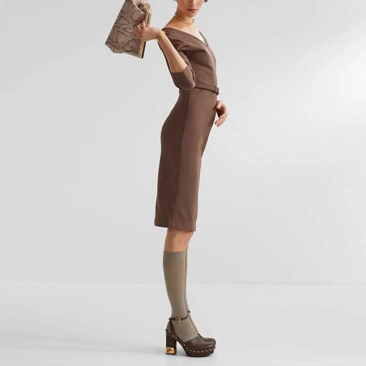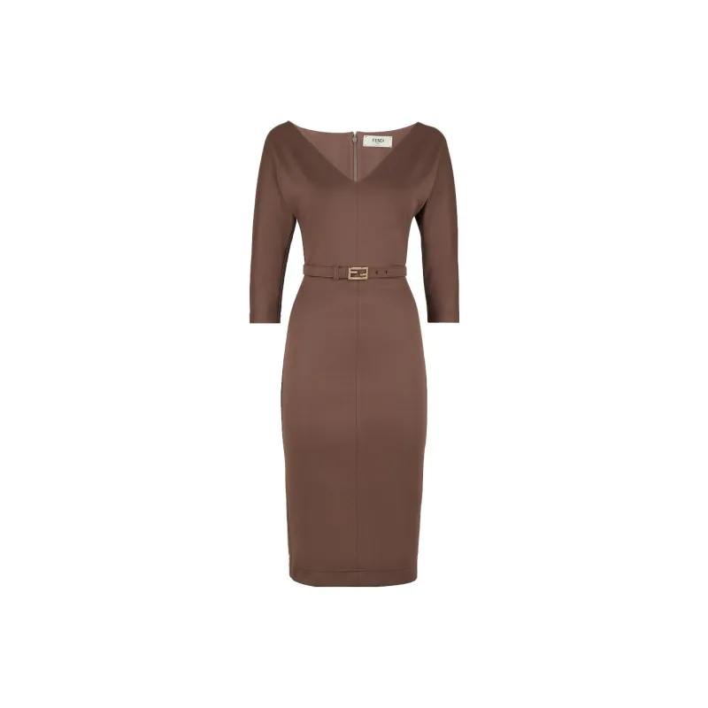 FENDI Коричневый Женские Длинные Платья с Рукавами