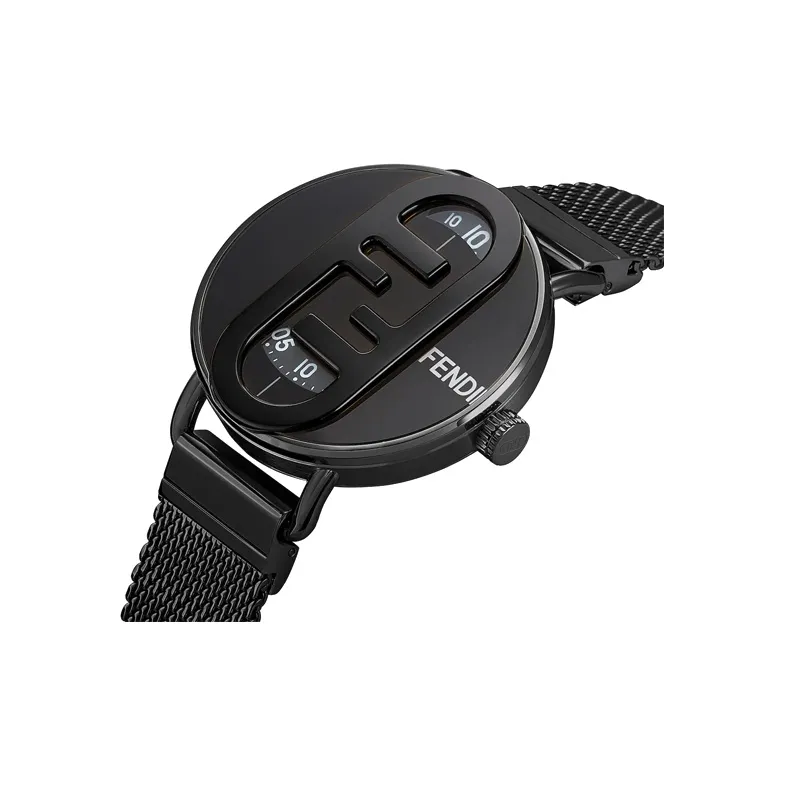 FENDI O'Lock Round Collection Наручные часы Кварцевый механизм Ремешок из нержавеющей стали 42 мм Черный циферблат Мужские часы