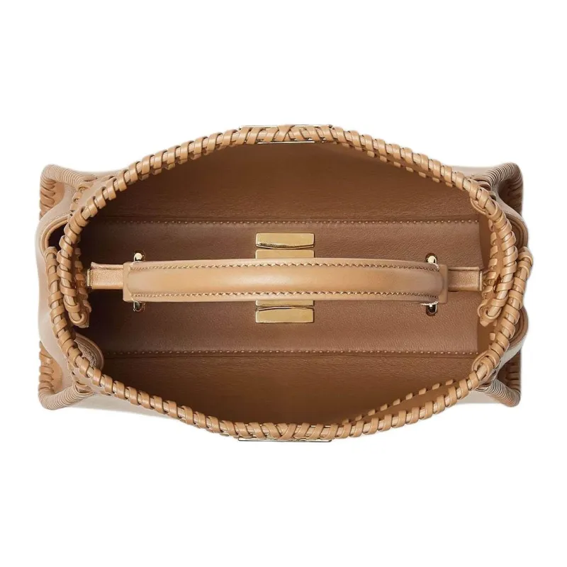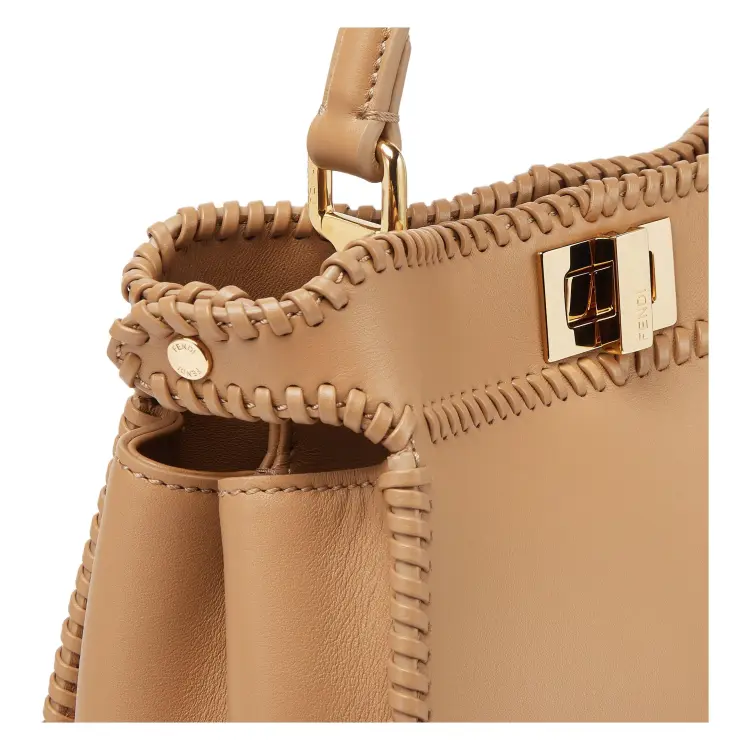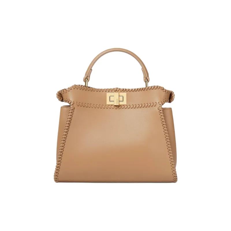 FENDI Peekaboo Телячья кожа Одно плечо Сумка Мини Женская Бежевая