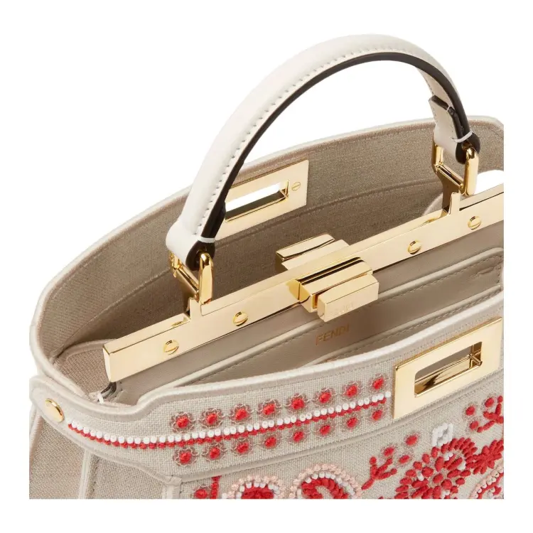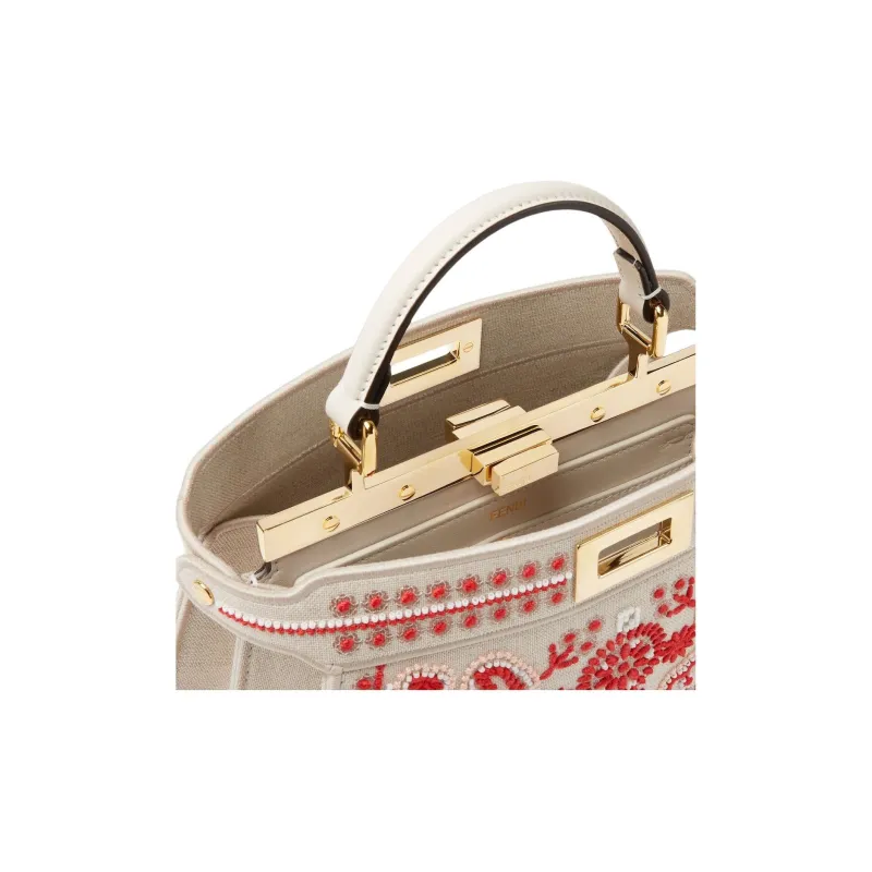 FENDI Peekaboo ISeeU Телячья кожа Одно плечо Сумка Маленькая Женская Белая и Красная