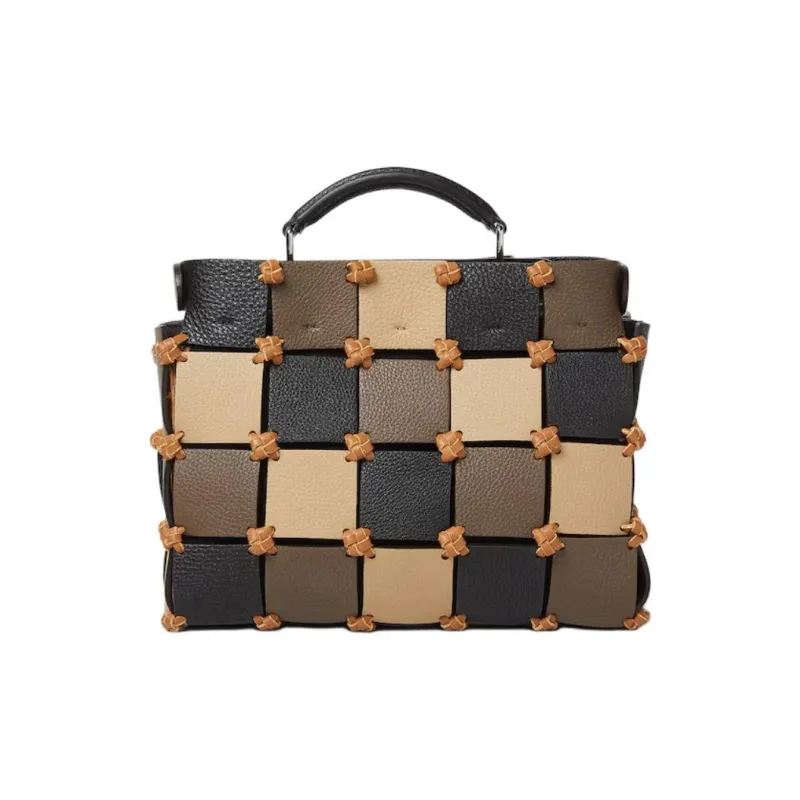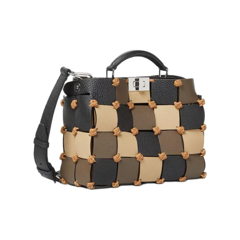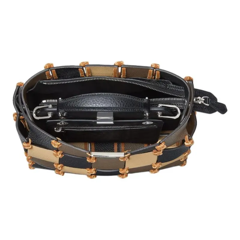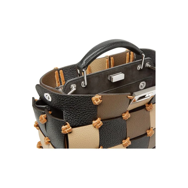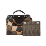 FENDI Peekaboo ISeeU Сумка из коровьей кожи Маленькая Женская Черная Бежевая и Коричневая