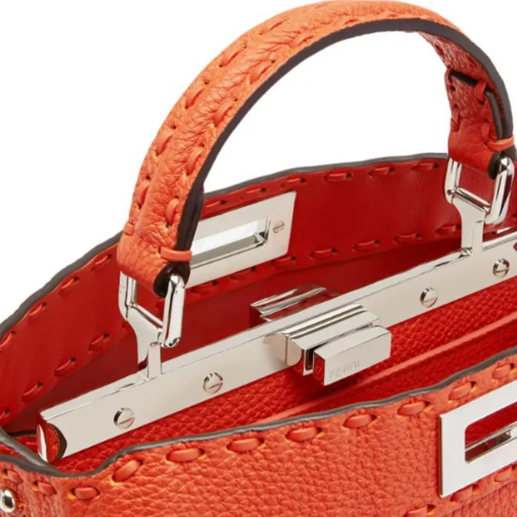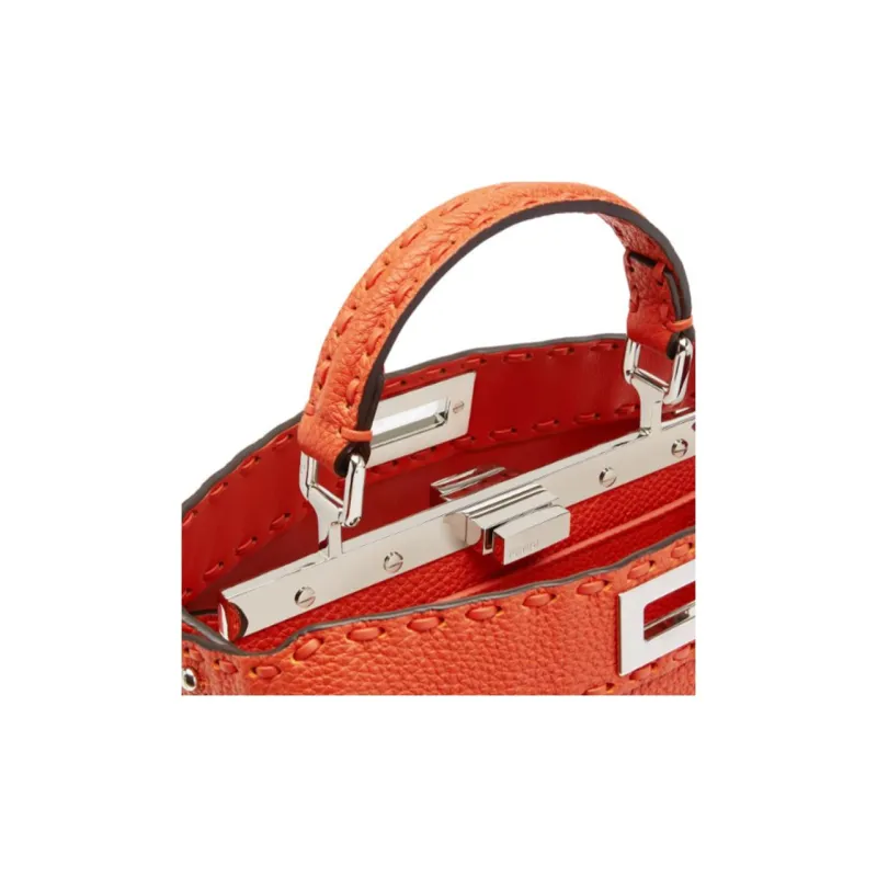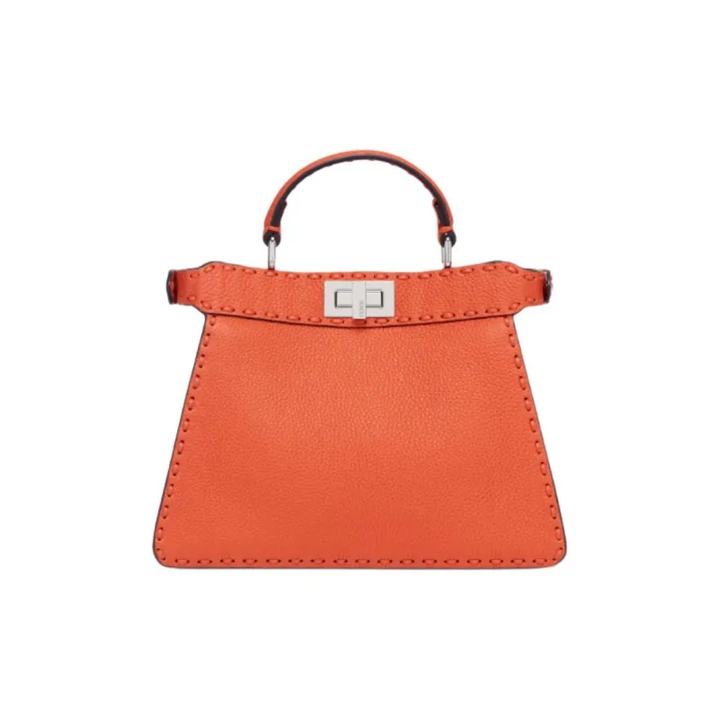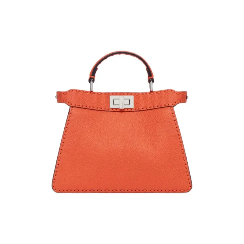 FENDI Peekaboo ISeeUSelleria Кожа Одно плечо Сумка Маленькая Женская Апельсин