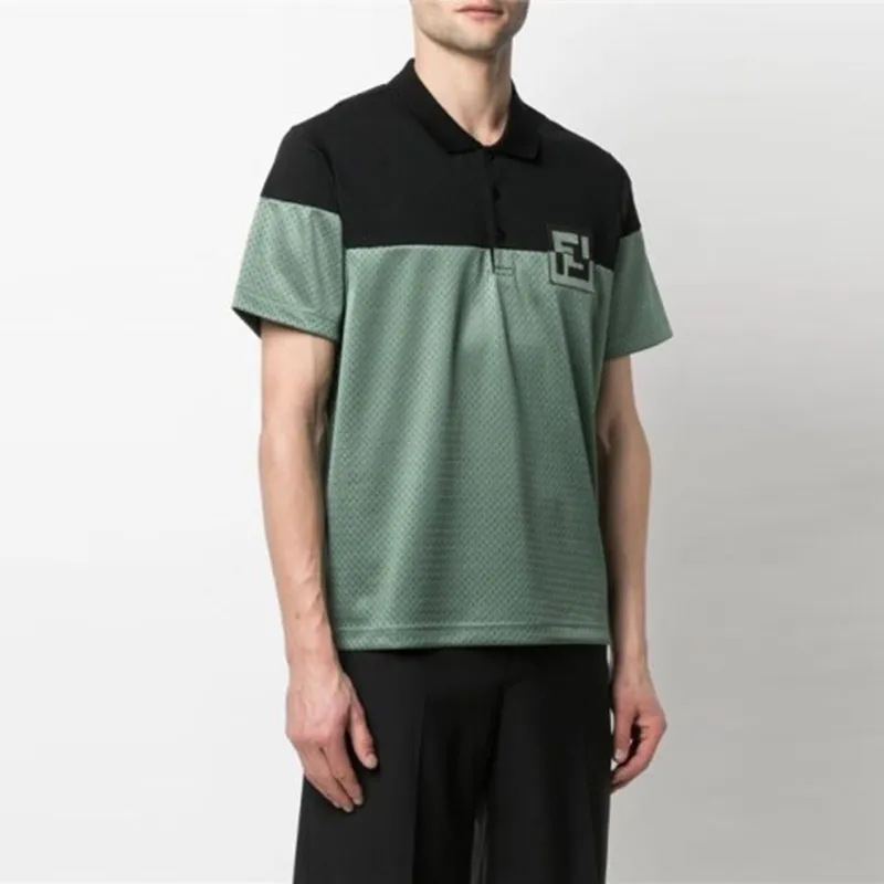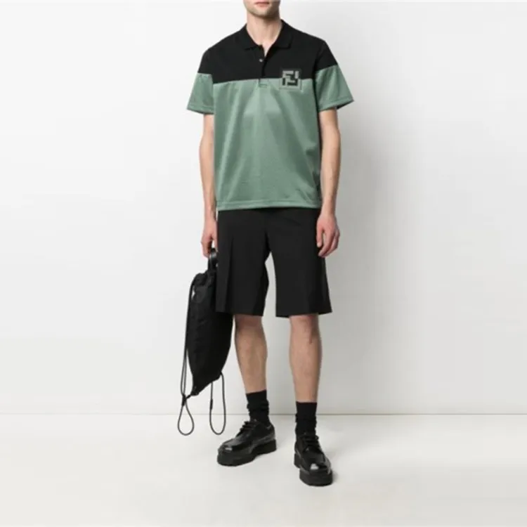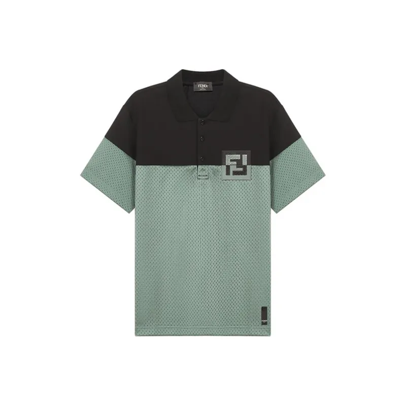 FENDI Поло Мужское Черное Шалфейно-Зеленое