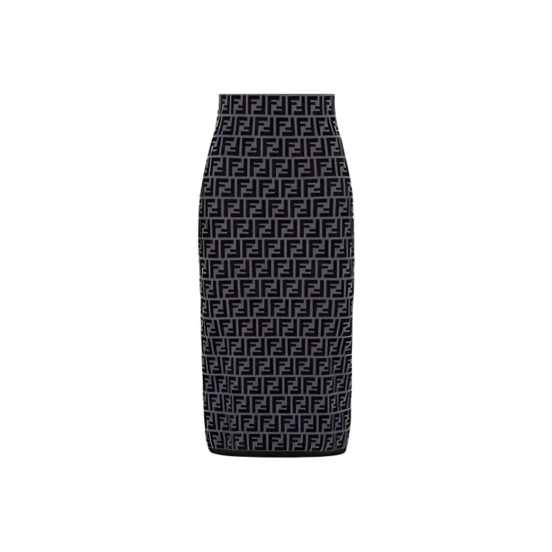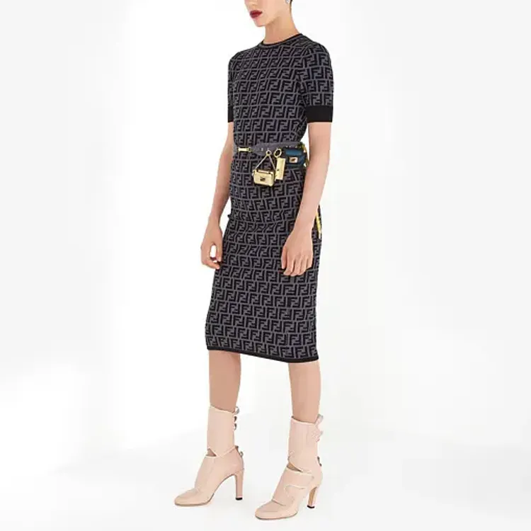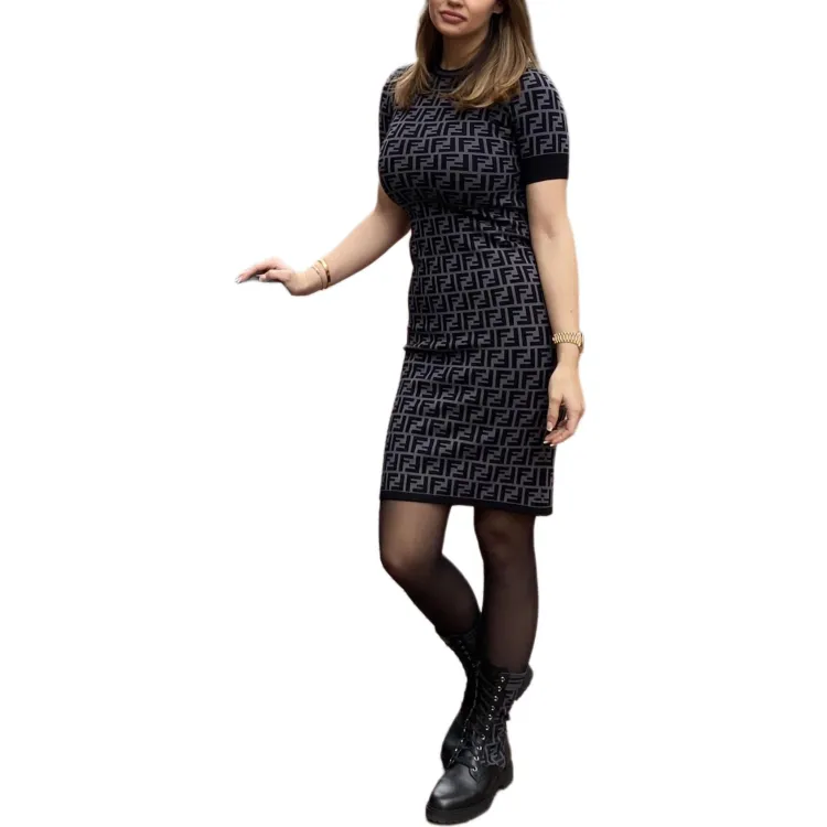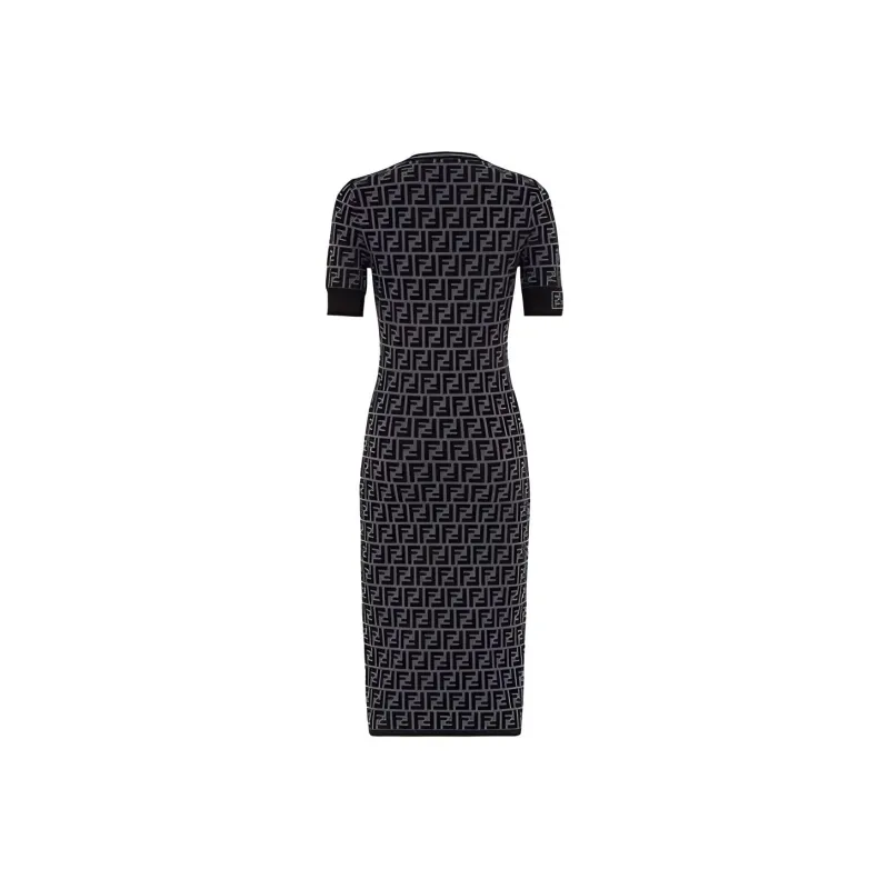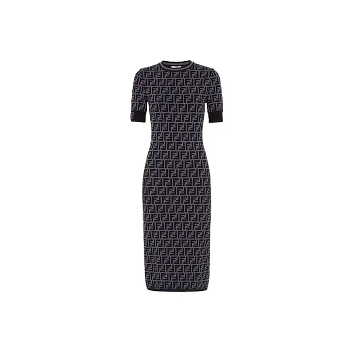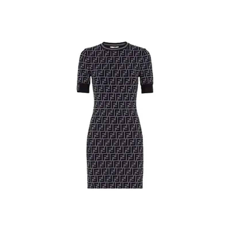 FENDI Короткий рукав Платье Женское Черное Серое