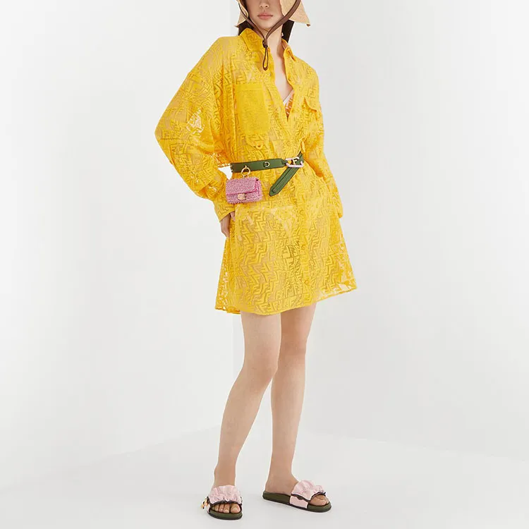 FENDI SS21 Длинное платье с длинными рукавами женское желтое