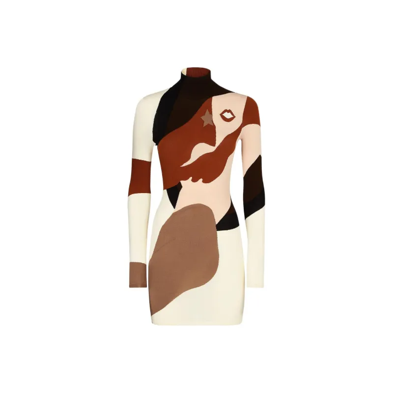 FENDI SS22 Длинное платье с длинными рукавами женское многоцветное