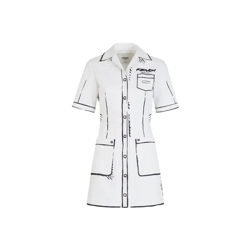 FENDI SS23 Короткий рукав Платье Женское Белое