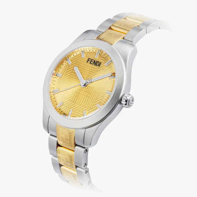 FENDI Мужские часы Кварцевый механизм Ремешок из нержавеющей стали 40 мм Золотистый циферблат