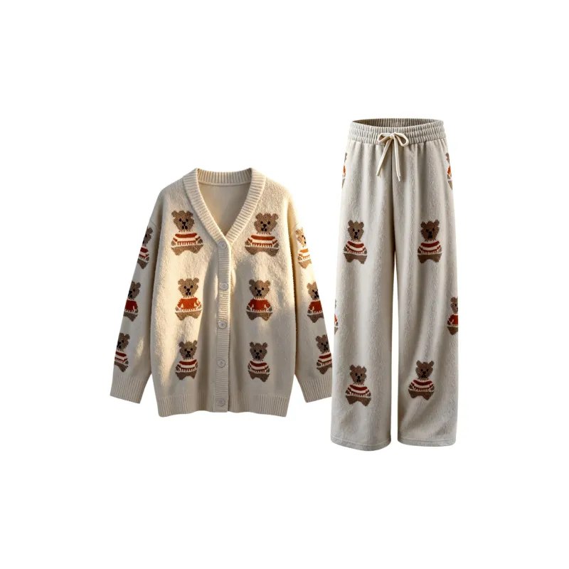 FENGTING Экрю Женские Пижамные Комплекты
