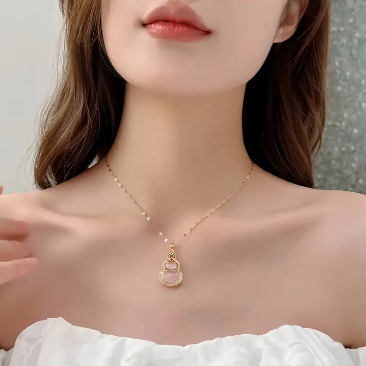 Стиль:Розовый нефритовый кулон на ожерелье