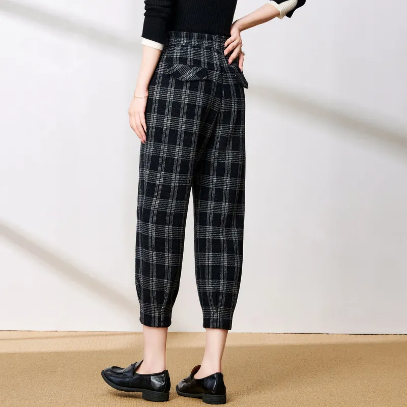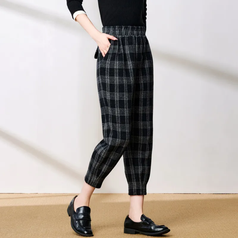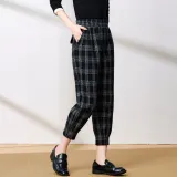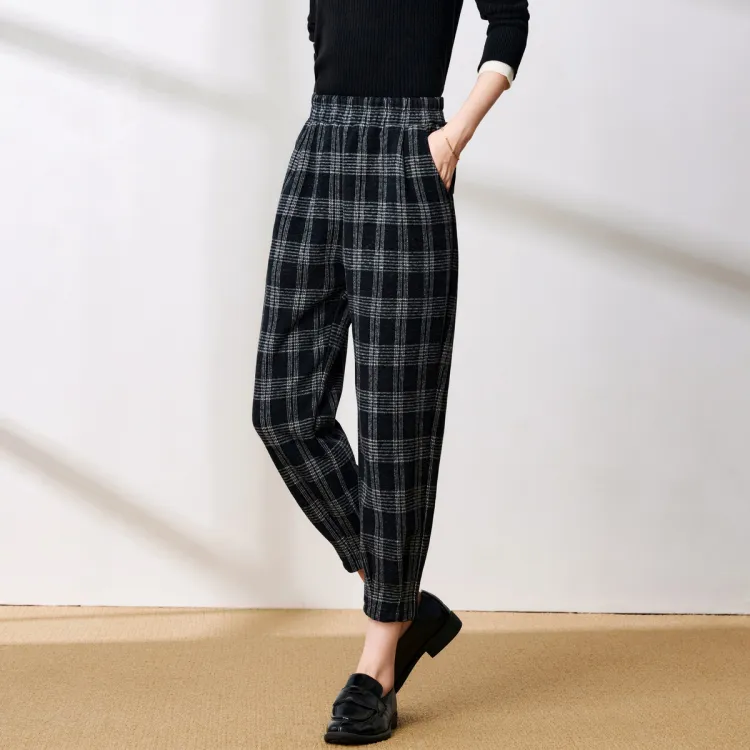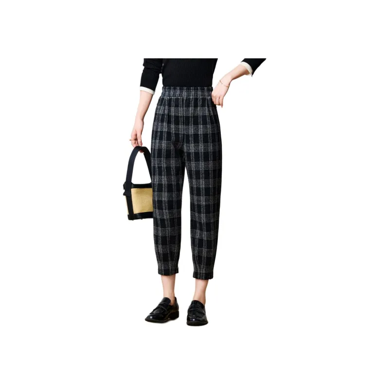FENHONGMALI Повседневные брюки Женские Черный Белый Клетка
