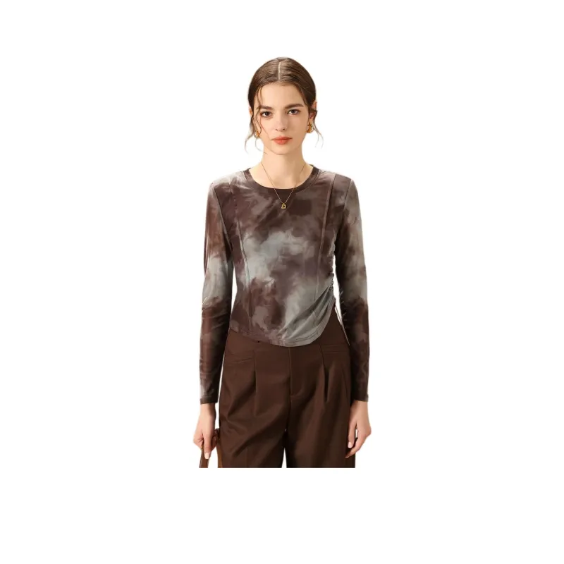 FENHONGMALI Рубашка Женская Кофейного цвета