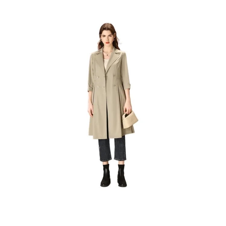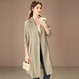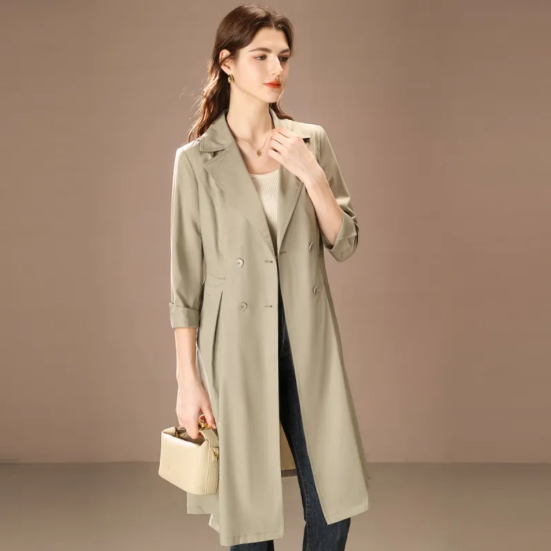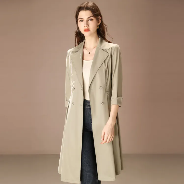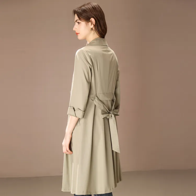FENHONGMALI Тренчкот Женский Гороховый Зеленый