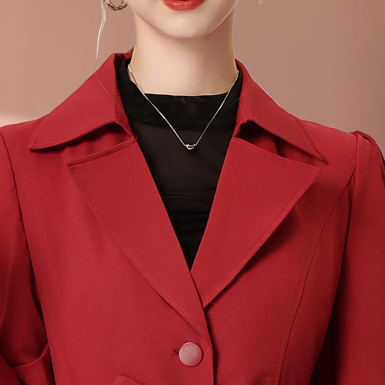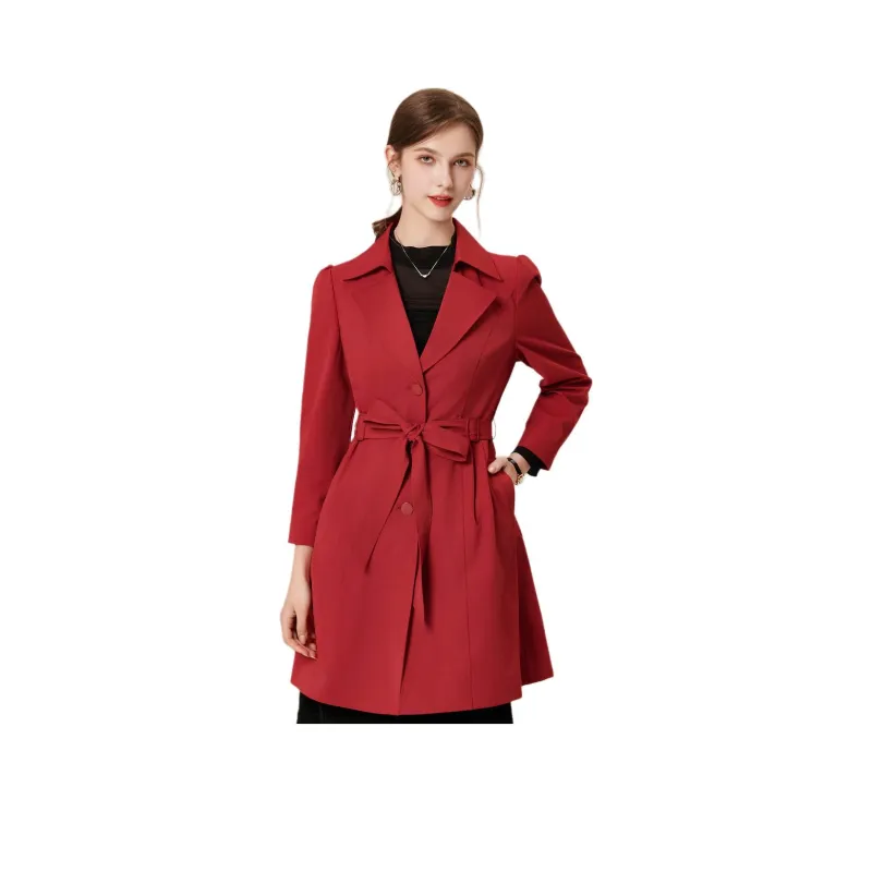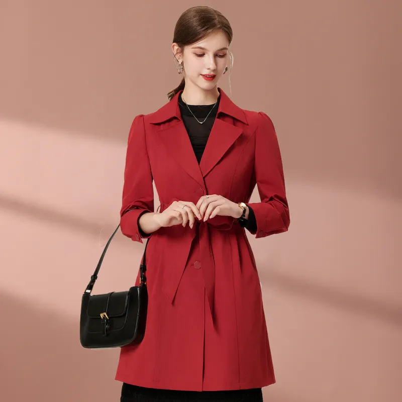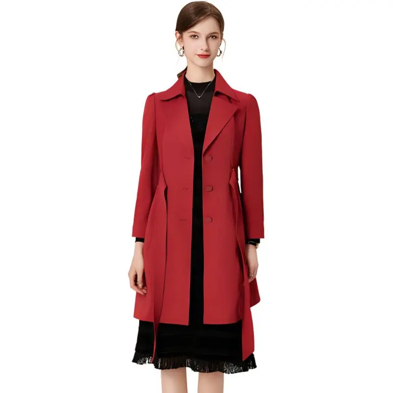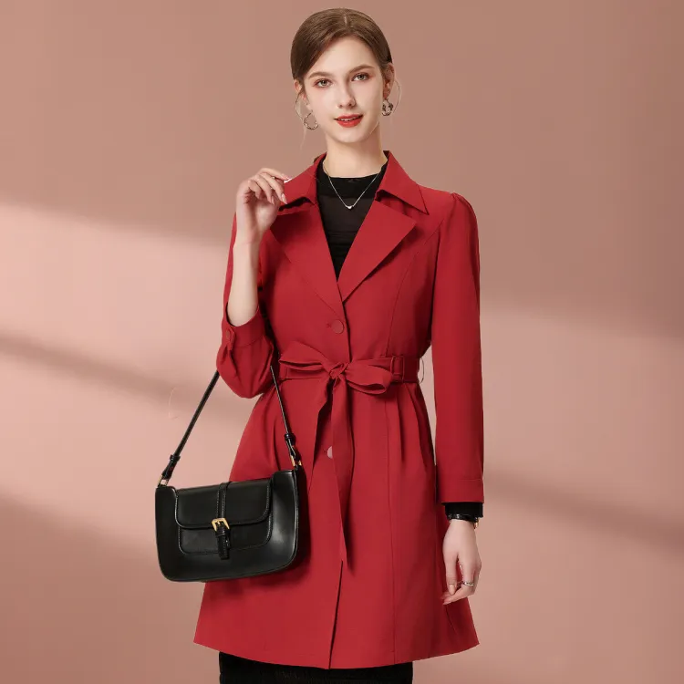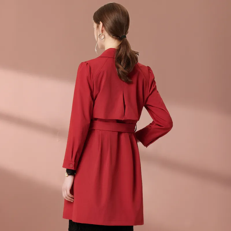 FENHONGMALI Тренчкот Женский Красный