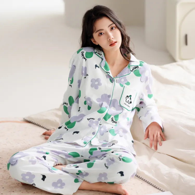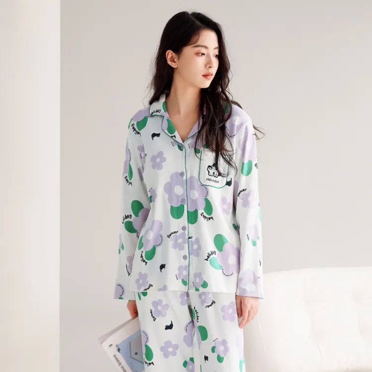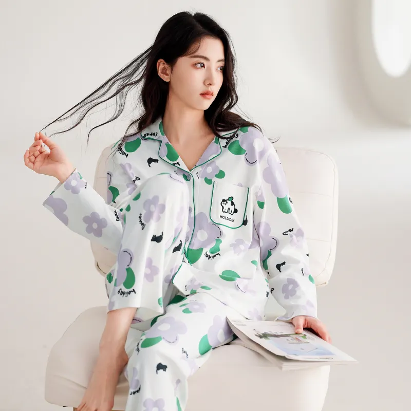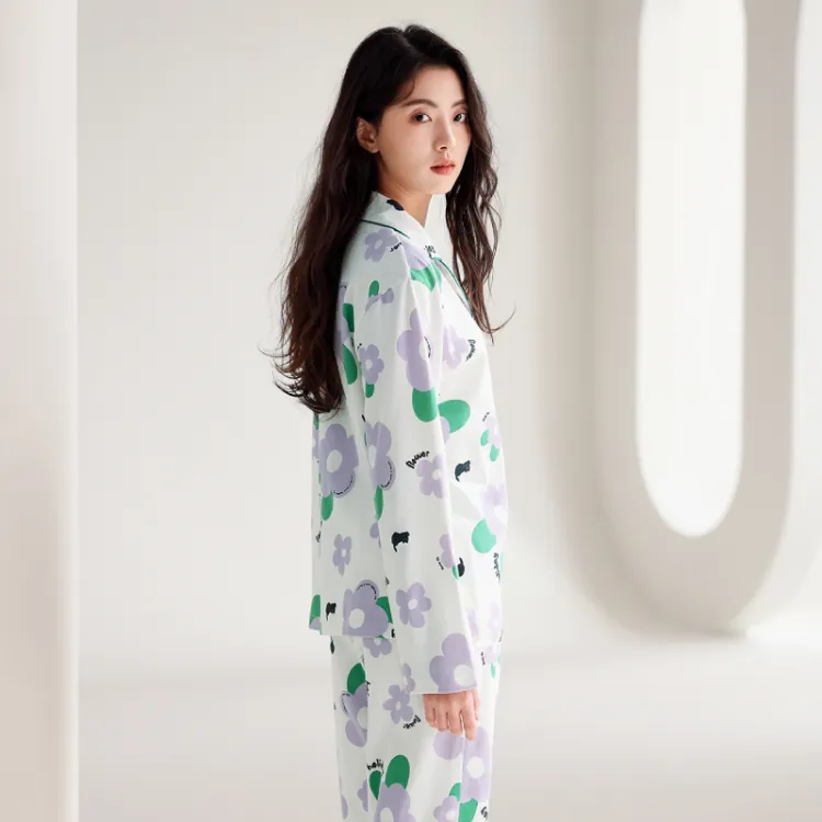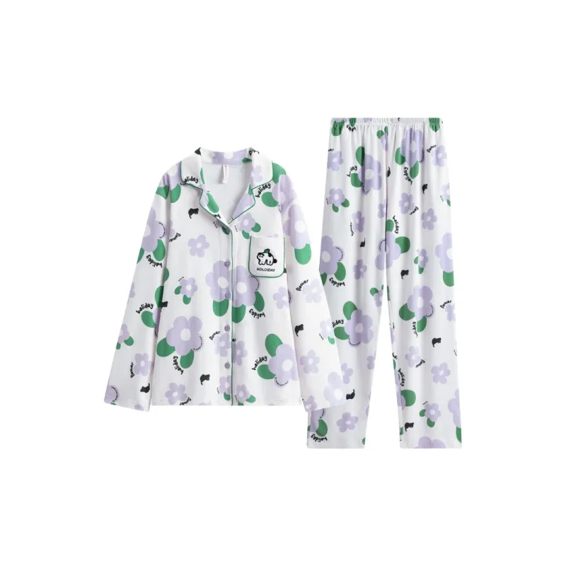 FENTENG Пижамный комплект Женский Белый с цветочным узором