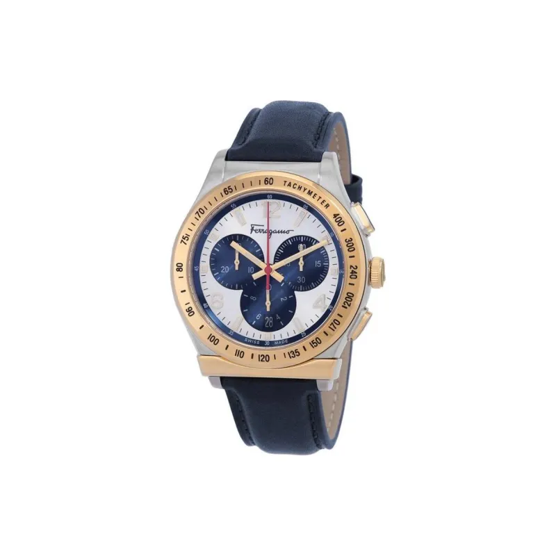 FERRAGAMO 1898 Collection Мужские часы Кварцевый механизм Кожаный ремешок 42 мм Серебристый циферблат