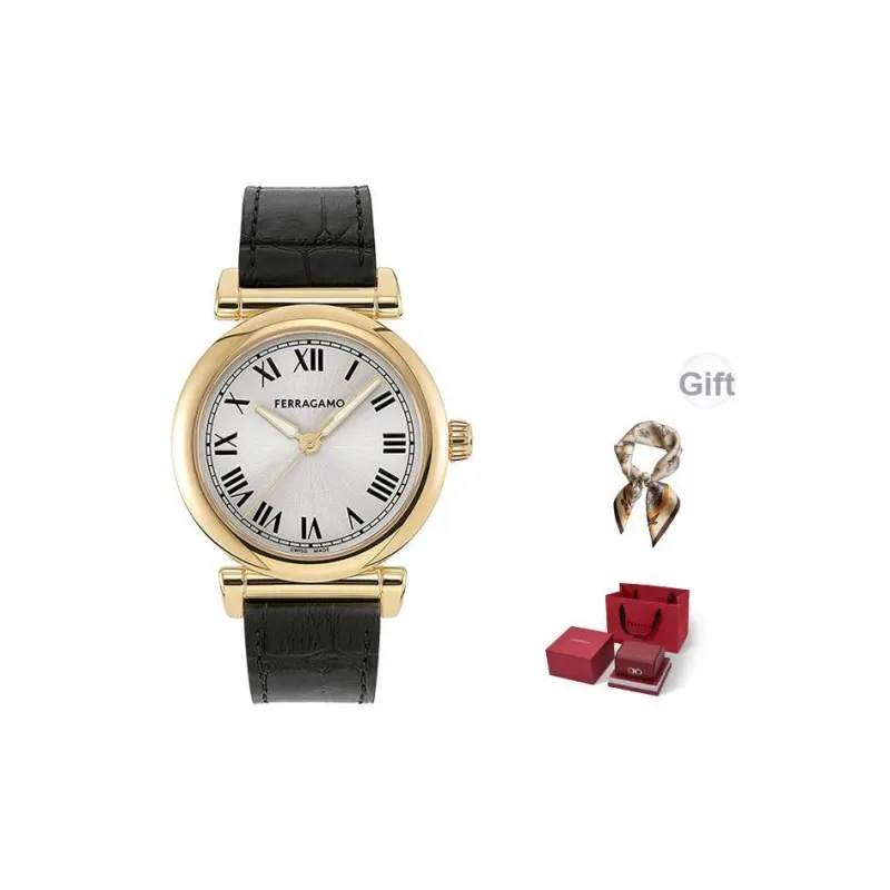 FERRAGAMO Женские часы Кварцевый механизм Коровья кожа Ремешок 36 мм Серебристый циферблат Ограниченная серия Fortune Коробка + шелковый шарф