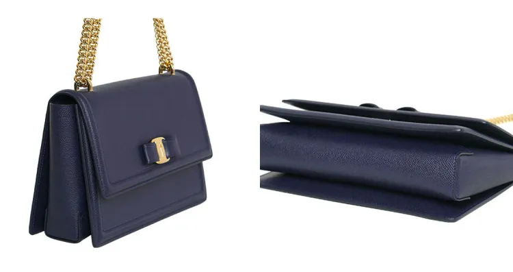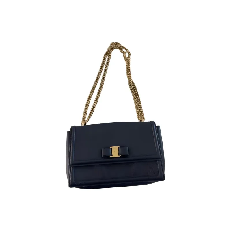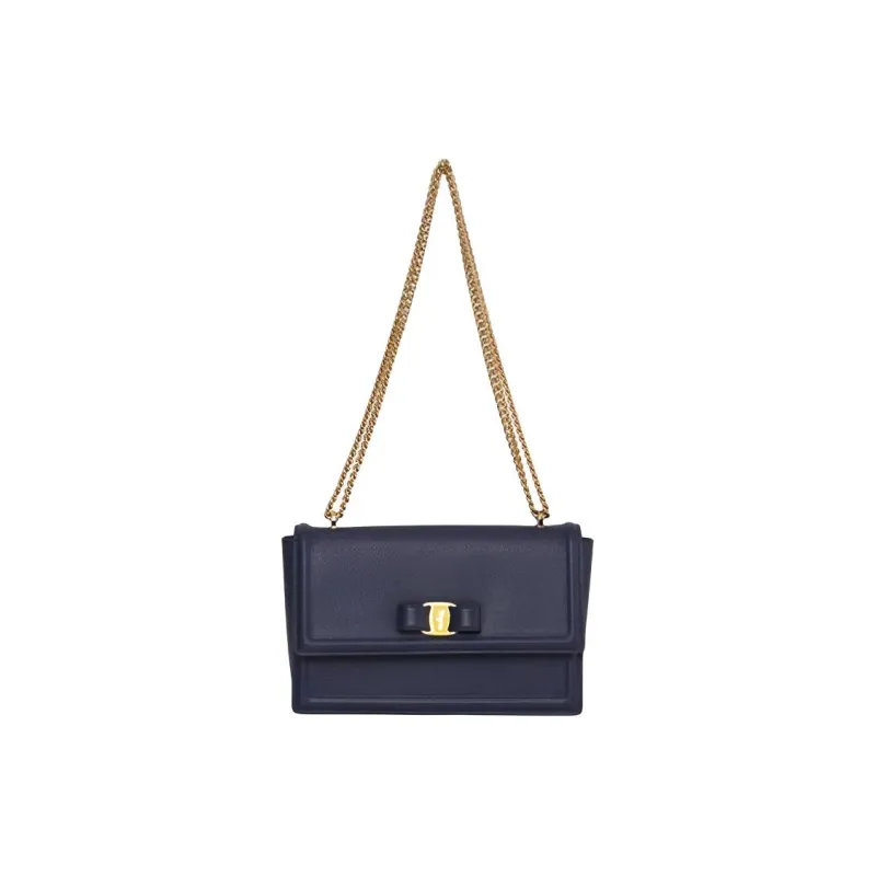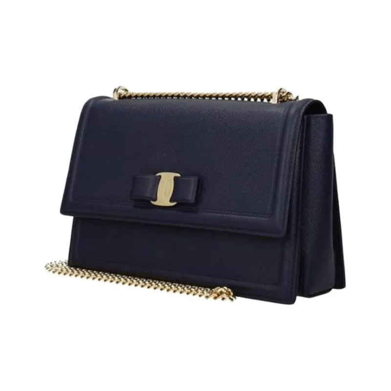 Ferragamo Телячья кожа Бант Сумка Сумка с цепочкой Ручная сумка Сумка через плечо Сумка на плечо Женская Темно-синий