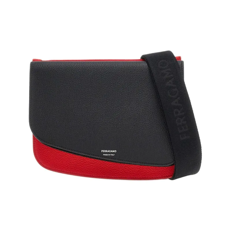 FERRAGAMO Телячья кожа Сумка через плечо Сумка на плечо Мужская Черная Красная