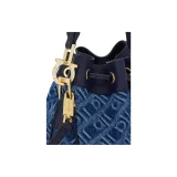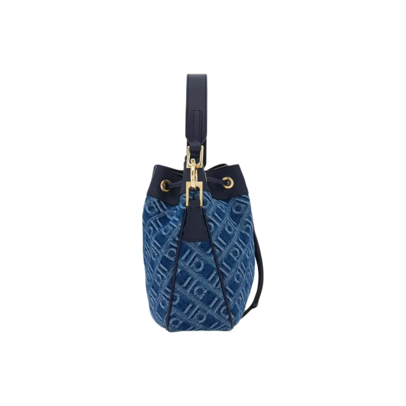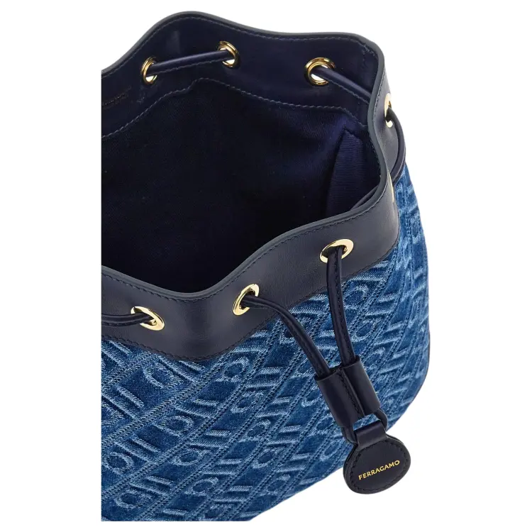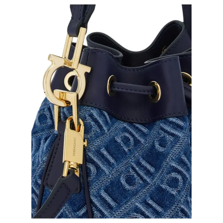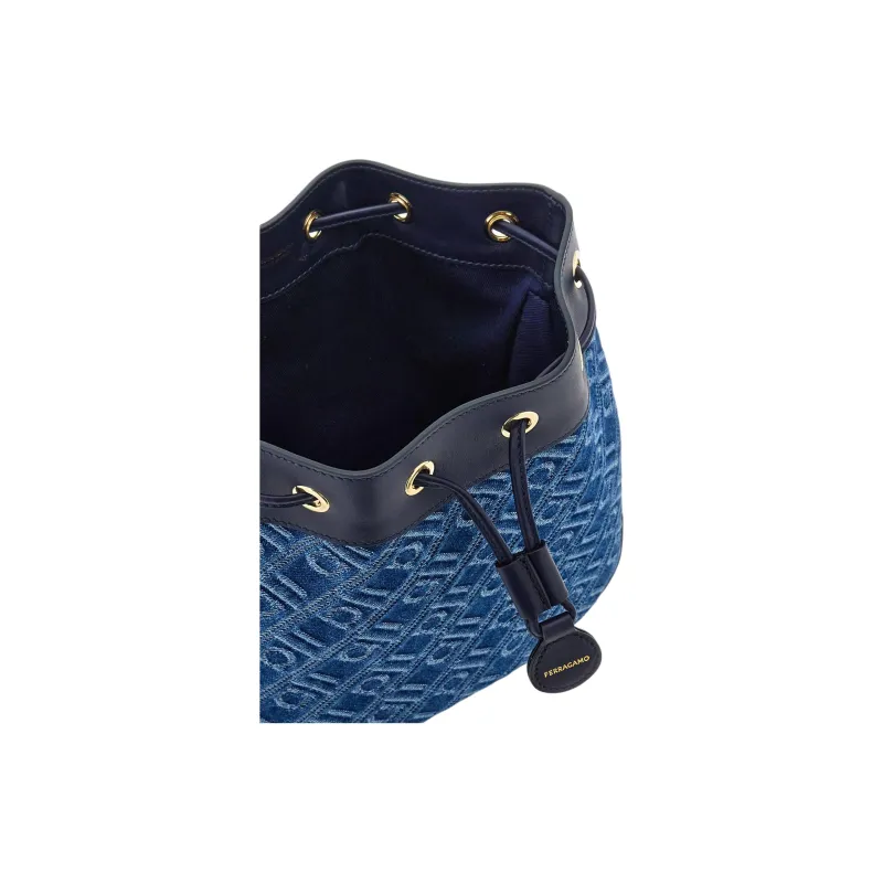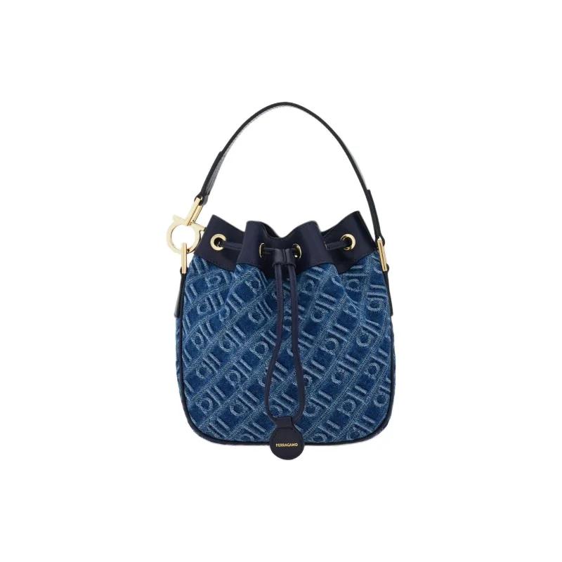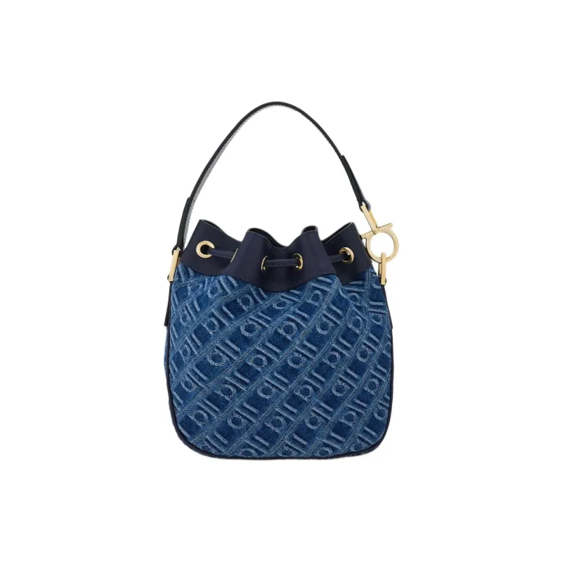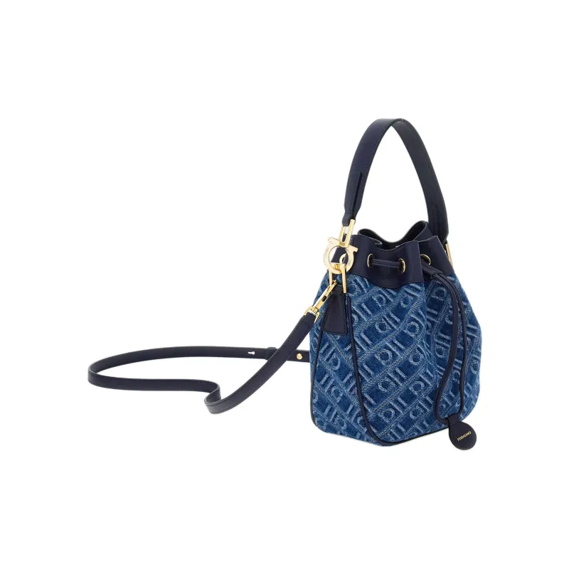 Ferragamo Ткань Телячья Кожа Ведрообразная Сумка Сумка на Одно Плечо Женская Джинсовый Синий