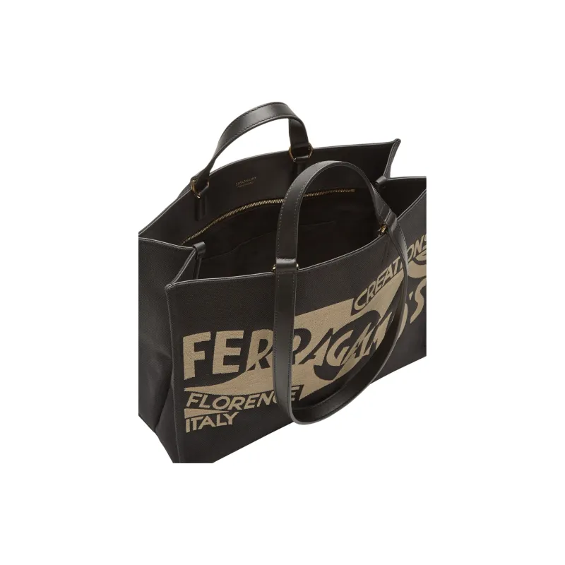 Ferragamo Телячья кожа Сумка-тоут Сумка для покупок Сумка через плечо Сумка среднего размера Женская Черная