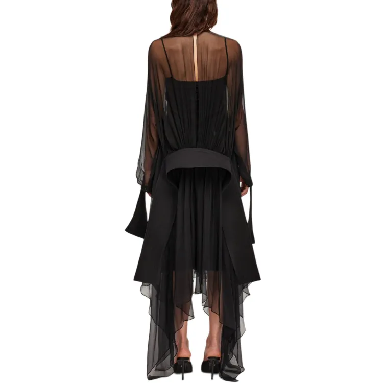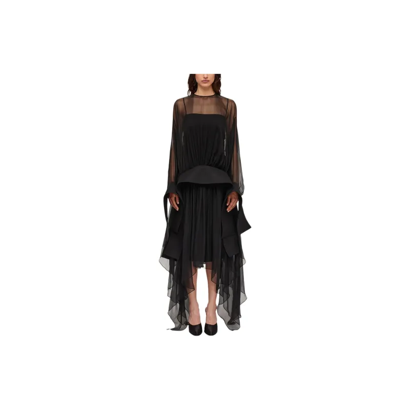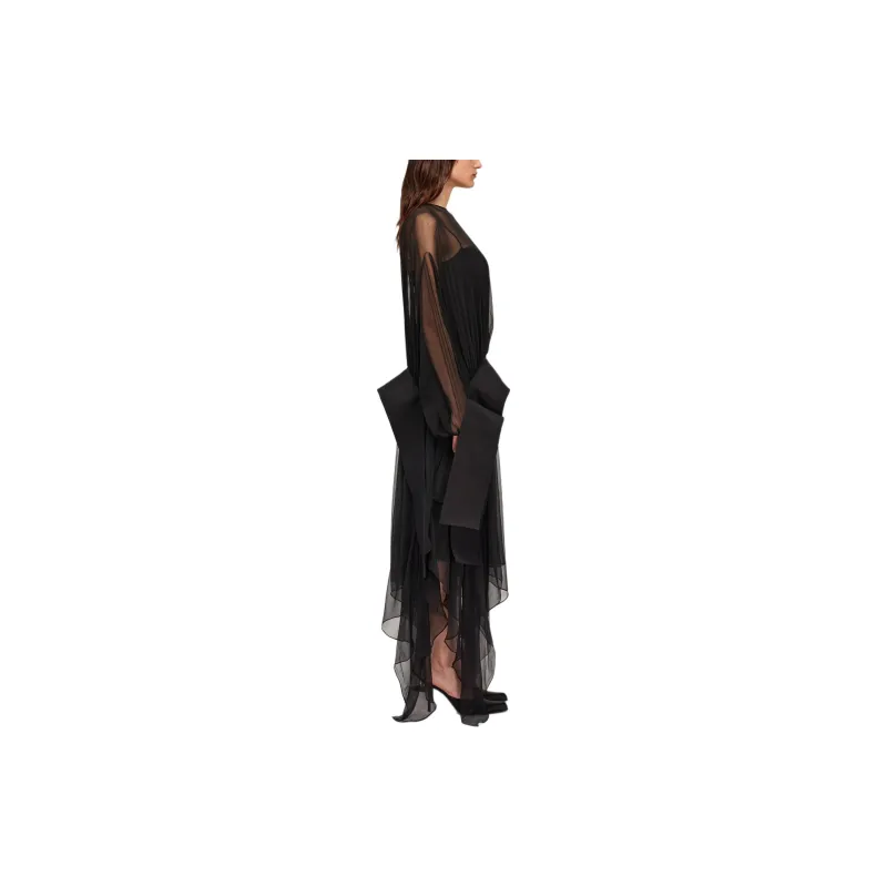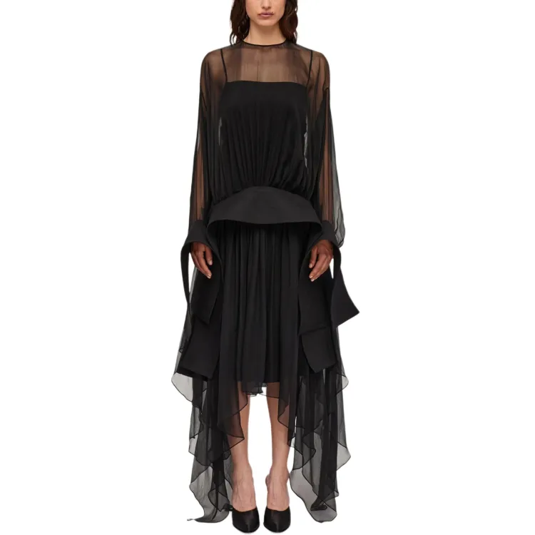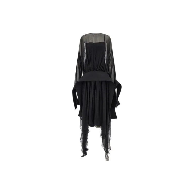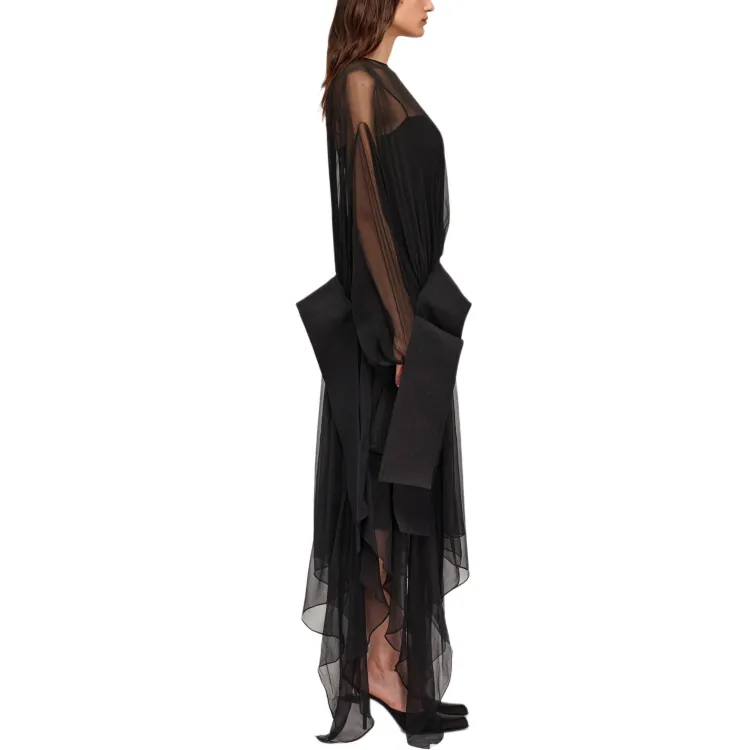 FERRAGAMO FW24 Длинное платье с длинными рукавами женское черное