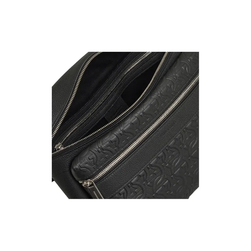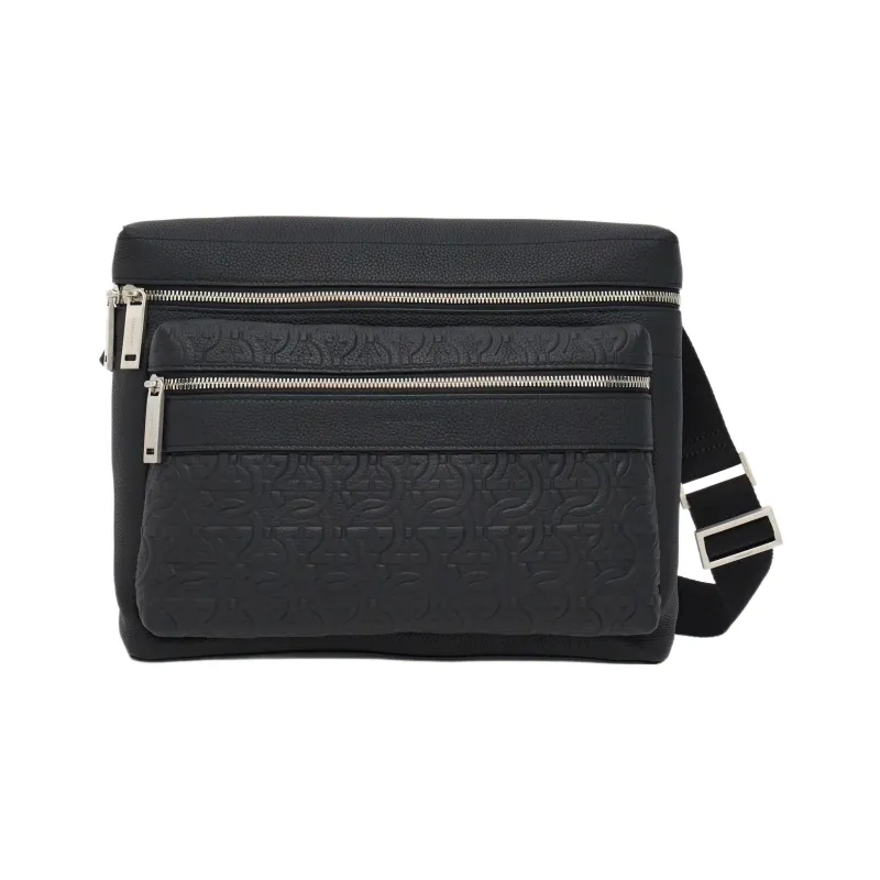 FERRAGAMO GANCINI Телячья кожа Сумка через плечо Сумка на плечо Мужская Черная