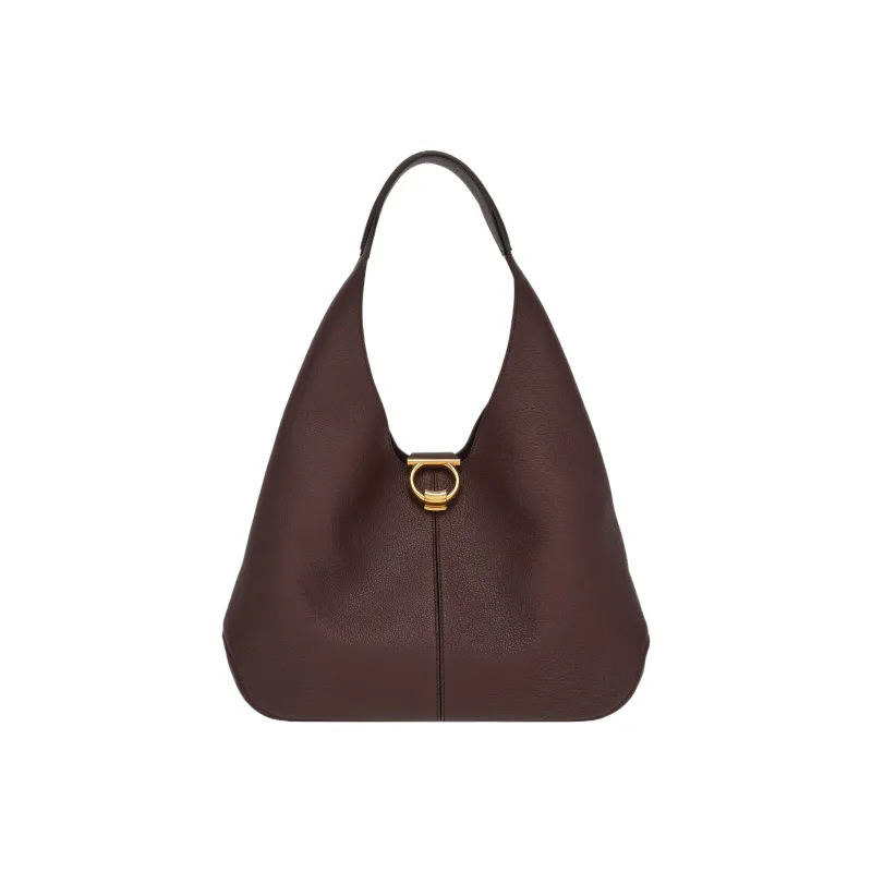 Ferragamo Gancini Телячья кожа Сумка-хобо Сумка Сумка через плечо Женская Темно-коричневая