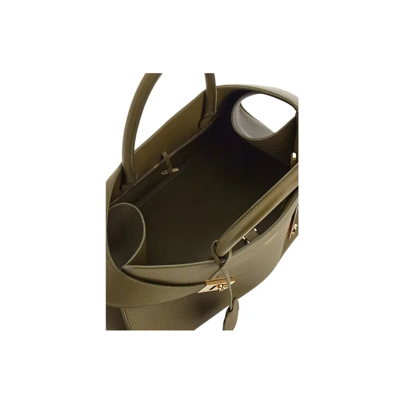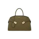 FERRAGAMO GANCINI Телячья кожа Сумка через плечо Сумка среднего размера Женская Оливково-зеленая