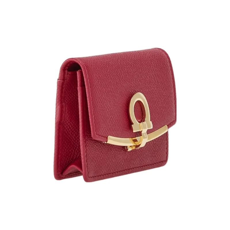 FERRAGAMO GANCINI Корова Кожа Держатель для визиток Женский Бордовый