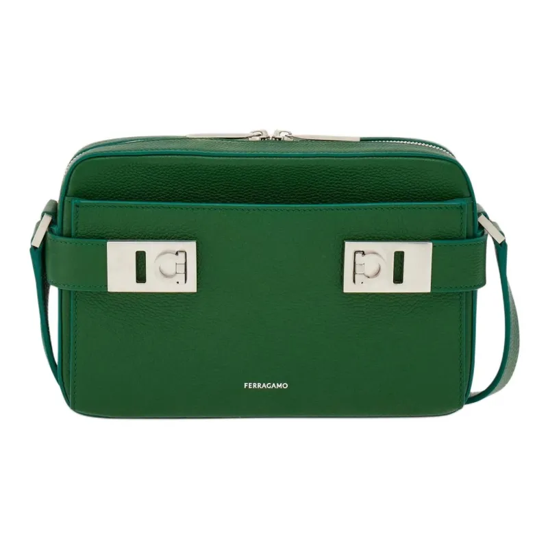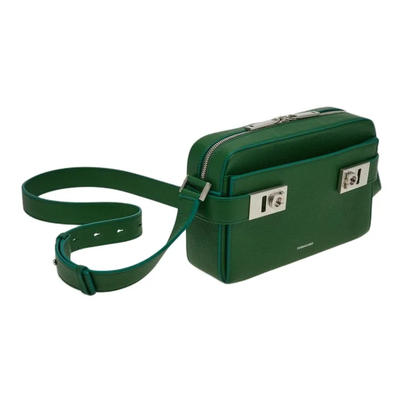 Ferragamo Gancini Hammered Текстура Телячья кожа Сумка через плечо Сумка на плечо Мужская Лесной зеленый
