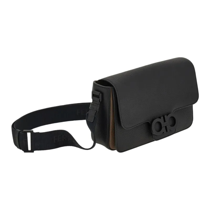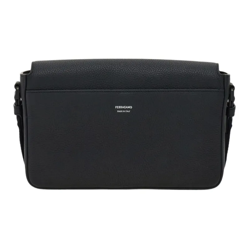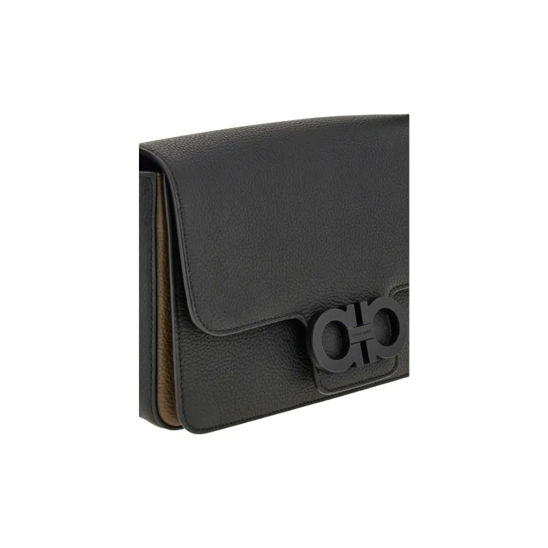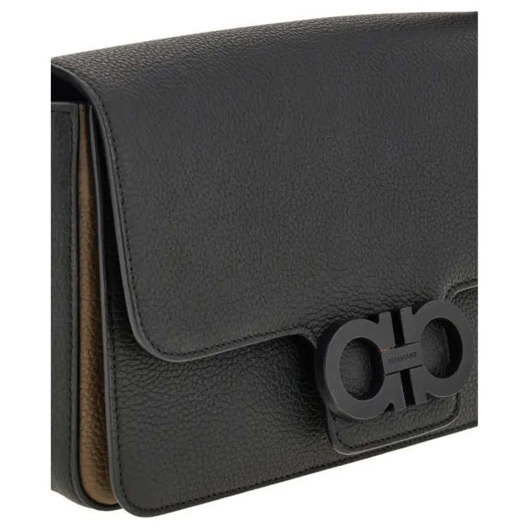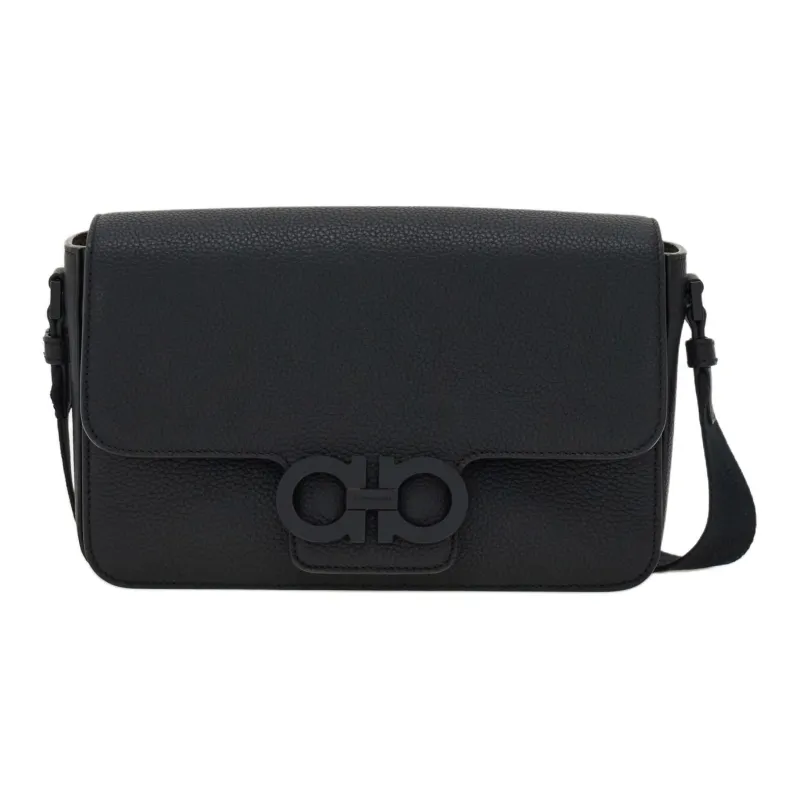 Ferragamo Gancini Hammered Текстура Телячья кожа Сумка на плечо Женская Черная