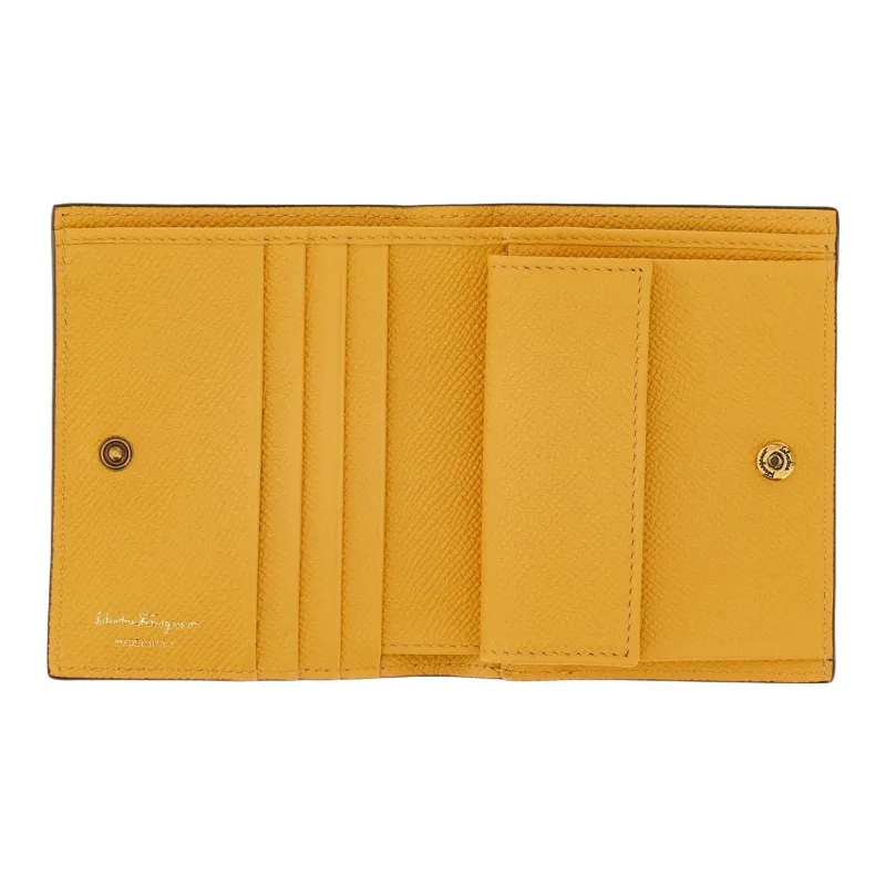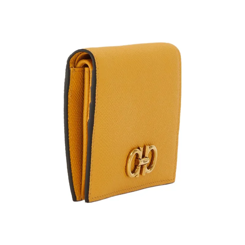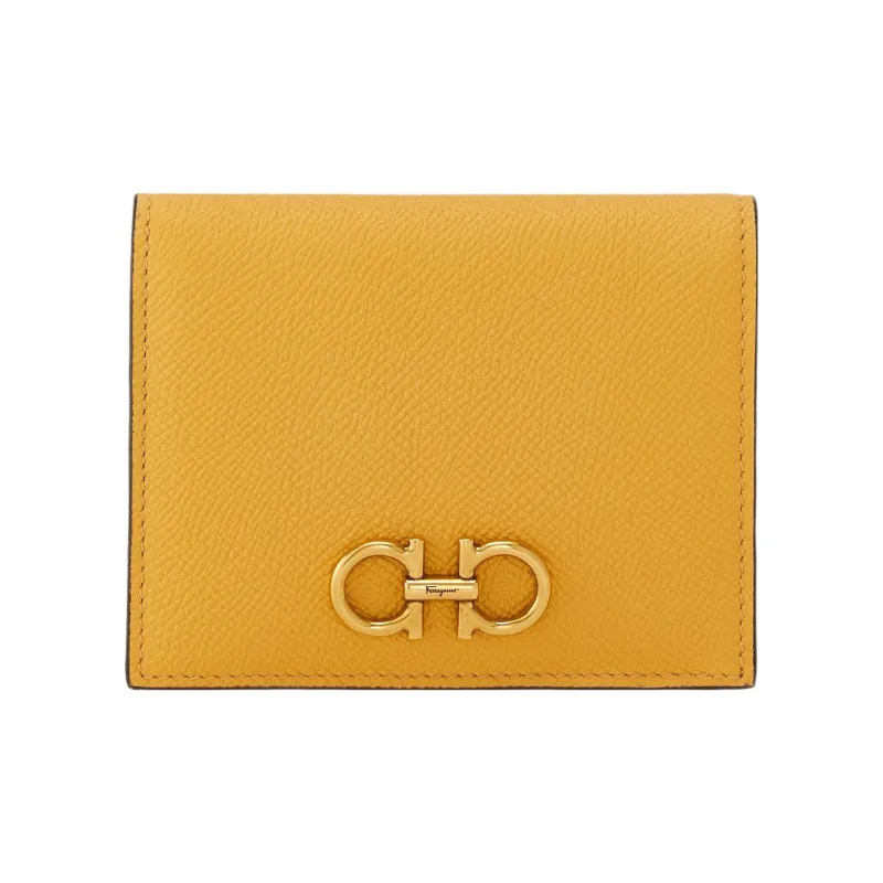 Ferragamo Gancini Hammered Текстура Телячья кожа Кошелек Маленький Женские Желтый