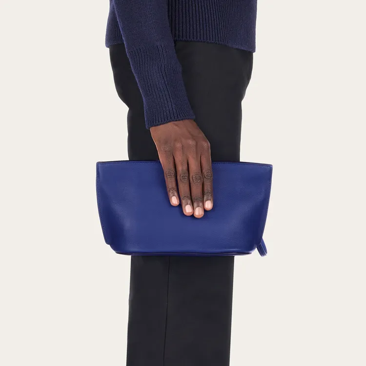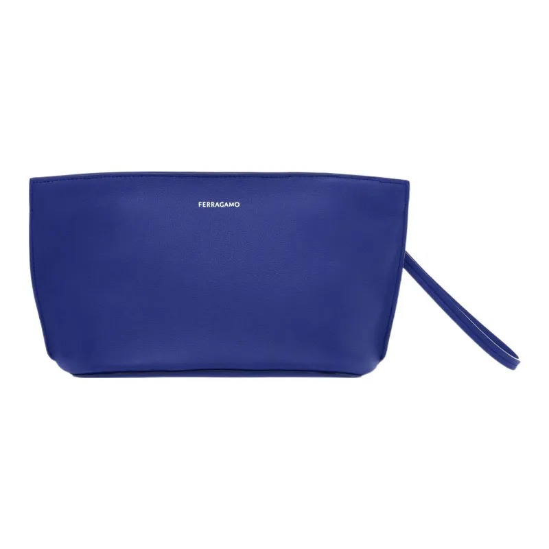 FERRAGAMO Кожаный клатч из крупнозернистой текстуры мужской синий