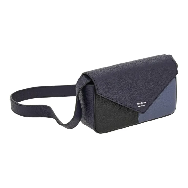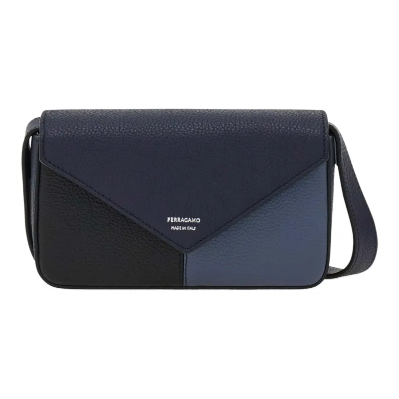 FERRAGAMO Hammered Текстура Телячья кожа Camera Сумка Сумка через плечо Мини Мужская Черный Светло-синий Полночный синий