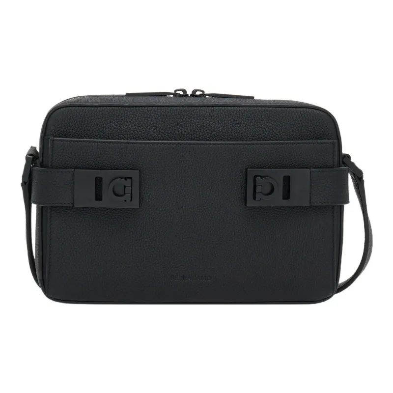 Ferragamo Hammered Текстура Коровья кожа Сумка через плечо Сумка на плечо Женская Черная