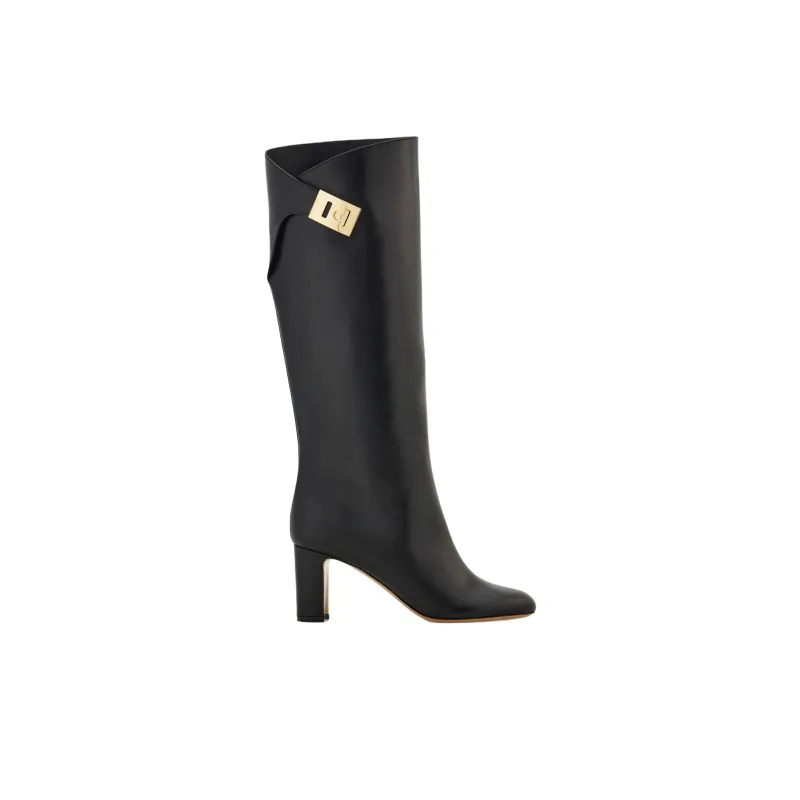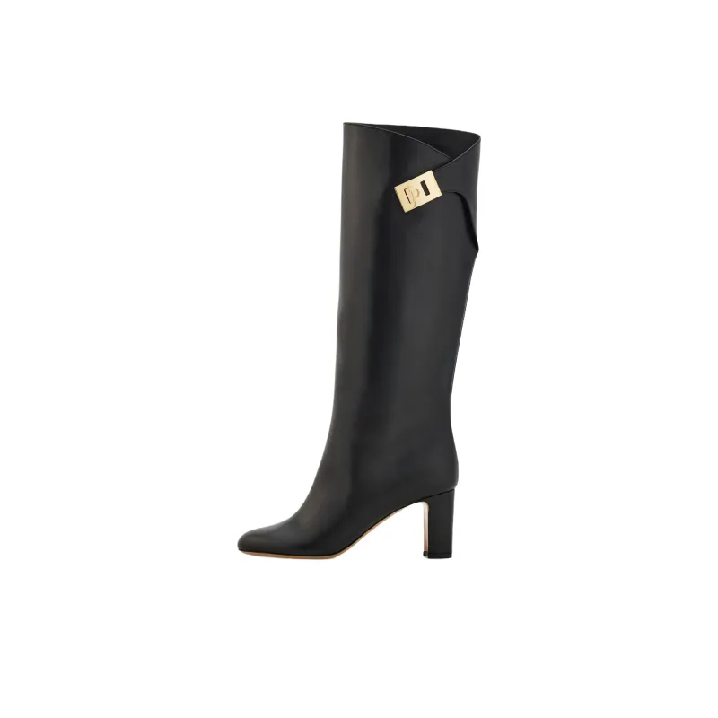 Ferragamo Hug Колено Высокие сапоги 7 см Женские Черные