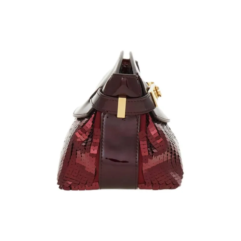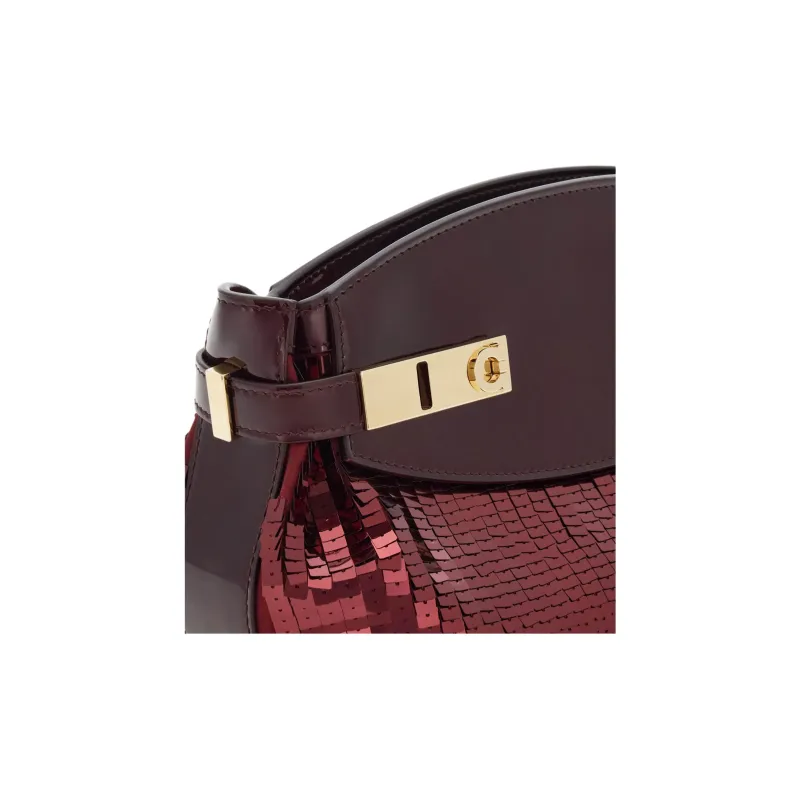 FERRAGAMO Hug Лакированная кожа Телячья кожа с блестками Сумка на плечо Мини Женская Бургунди Цвет