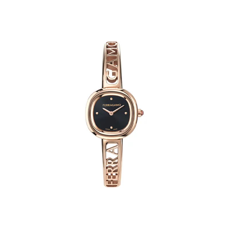 FERRAGAMO Женские часы Кварцевый механизм Ремешок из нержавеющей стали 23 Черный циферблат
